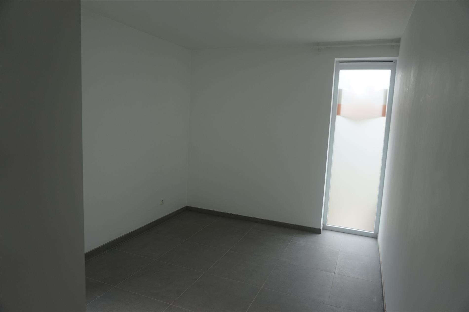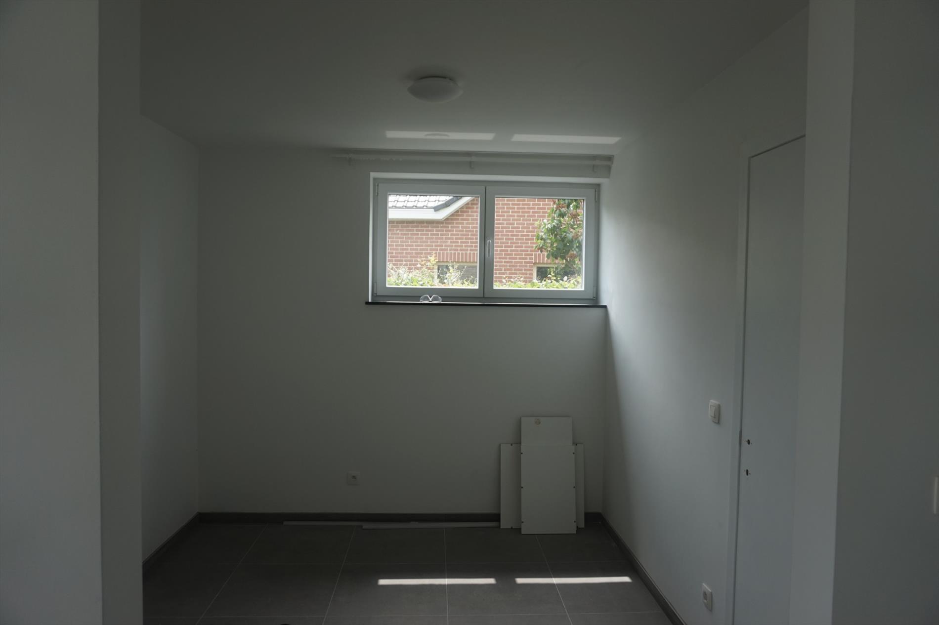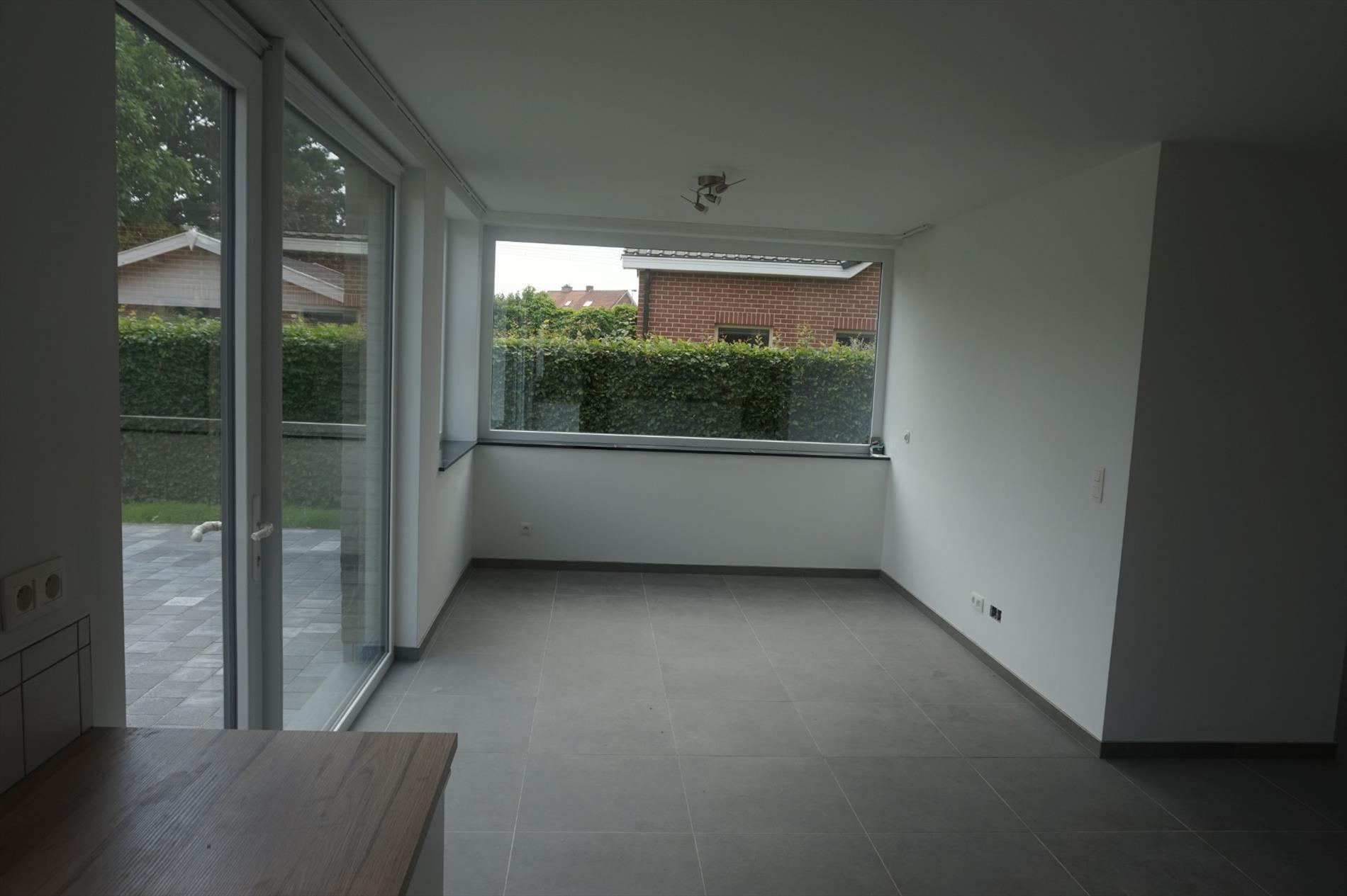 Voorzien van inkom met apart toilet en berging, ruime living met grote ramen zuiders zonnig terras, ingerichte keuken en badkamer, 1 slaapkamer en extra kamer in te richten als kamer of bureau, garage bereikbaar via tuin.