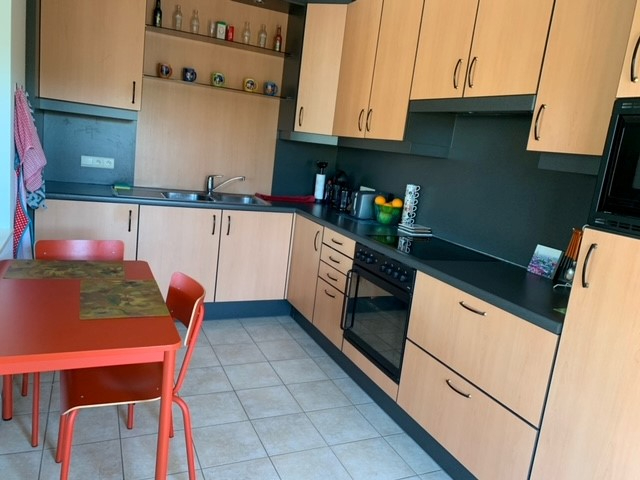 GOED GELEGEN appartement te Lokeren - voorzien van inkom met vestiaire - living - ingerichte keuken met toestellen (koelkast/diepvries/kookplaat/bakoven/dampkap) - ingerichte badkamer - berging - twee slaapkamers - kelderberging - overdekte auto staanplaats - CV/gas - lift- VRIJ: 01/02/2022