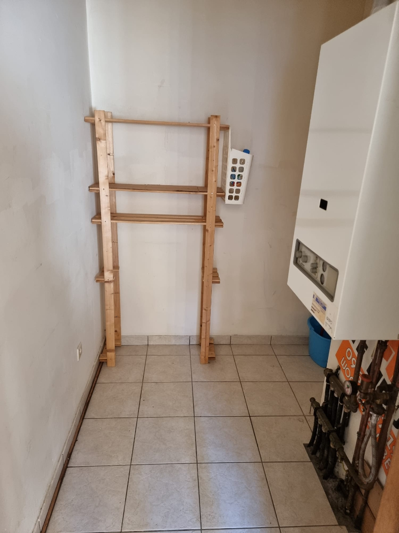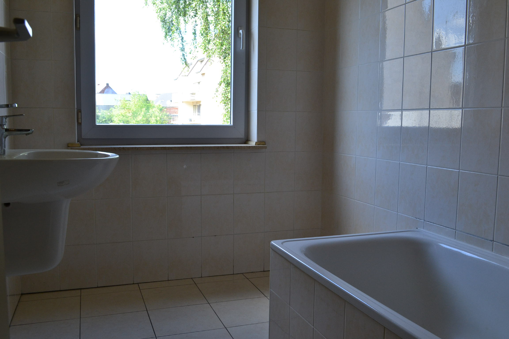 Appartement te Lokeren (1ste verdieping), voorzien van inkom - ruime living - ingerichte keuken - ingerichte badkamer met ligbad - berging - één slaapkamer - aparte toilet - garagebox nr 12 - CV op gas