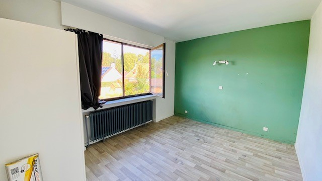 Appartement (1ste verdieping) omvat: inkom - ruime living - 1 ruime slaapkamer - 1 kleinere slaapkamer ( bureauruimte ) - ingerichte keuken met kookvuur en dampkap - ingerichte badkamer met ligbad en toilet - berging - stookplaats met zekeringskast en aansluiting voor wasmachine en droogkast - voorzien van centrale verwarming en waterverwarmer individueel op gas - garage. Er worden nieuwe ramen geplaatst. Beschikbaar: 01/10/2022
