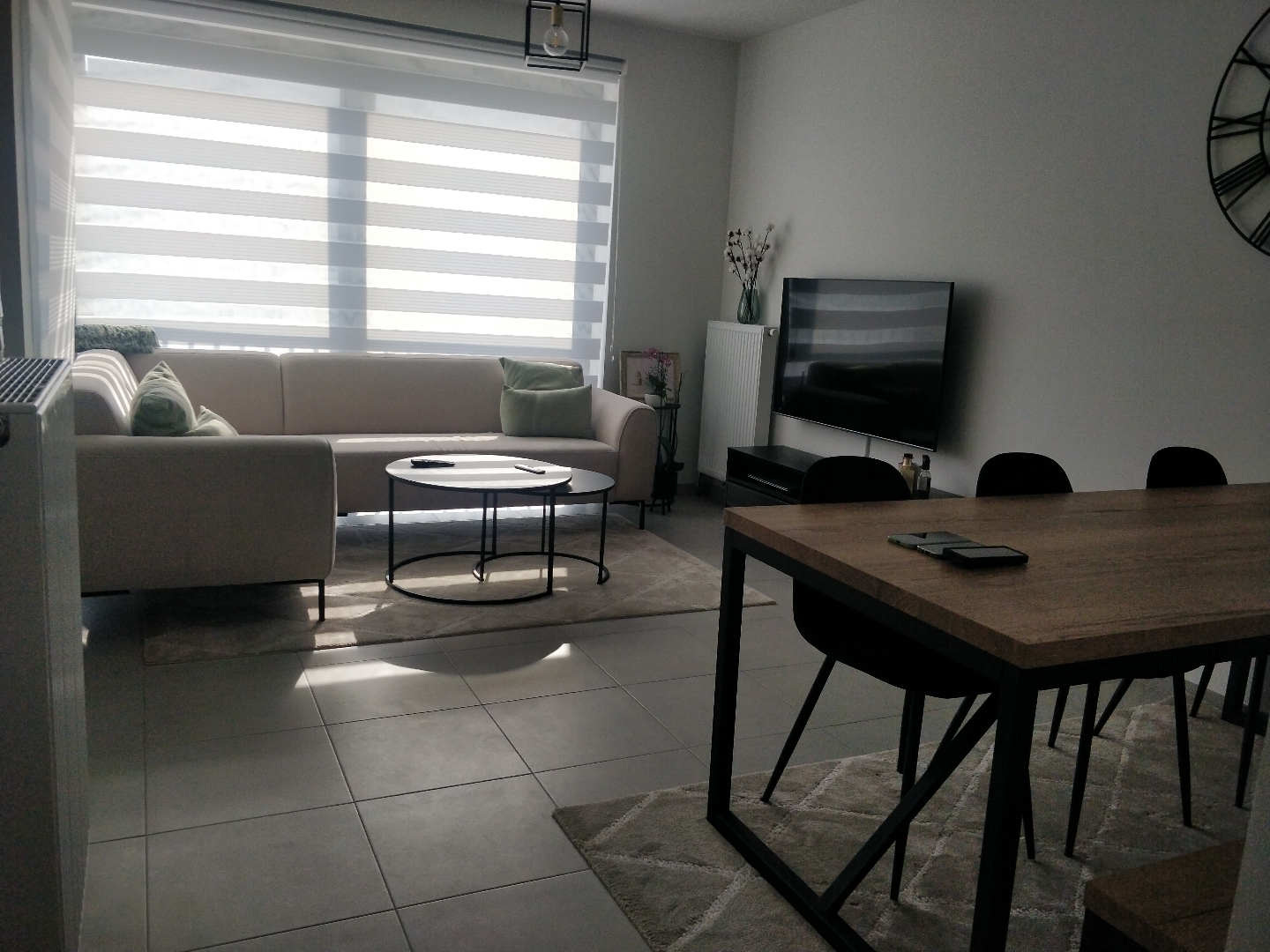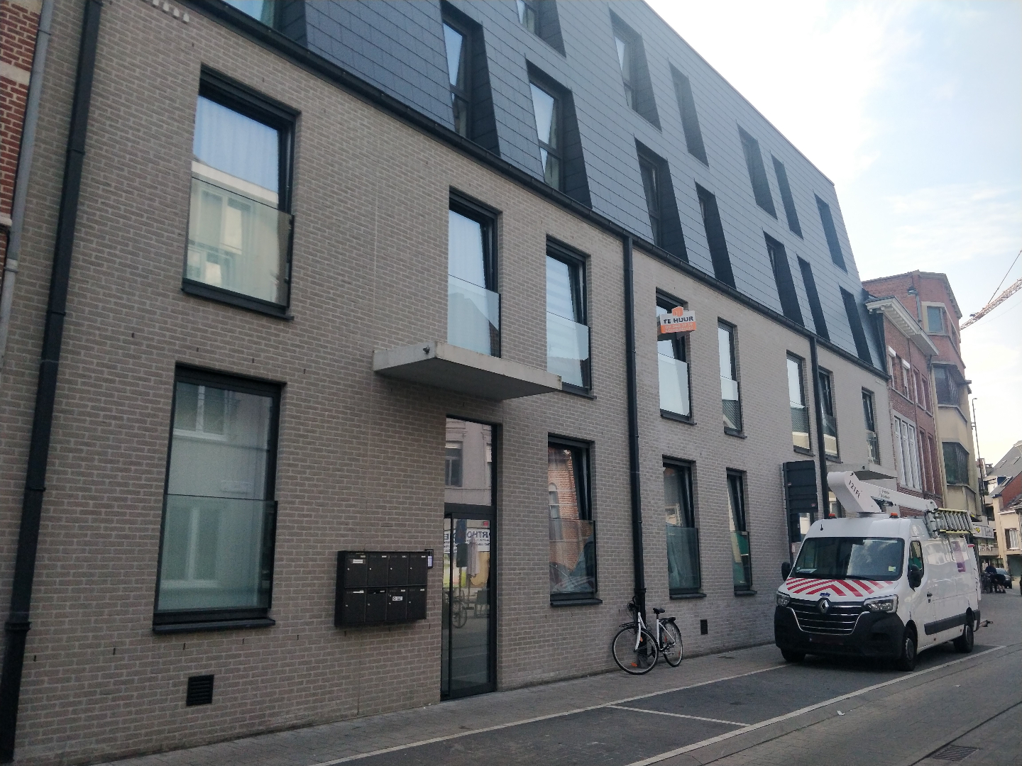Nieuwbouw appartement te Lokeren (2de verdieping), omvat: living met open ingerichte keuken - 2 slaapkamers - ingerichte badkamer met douche - apart toilet - berging - terras - bijhorende parkeerplaats 8 en private berging 10 met individuele tellers voor water, gas en elektriciteit