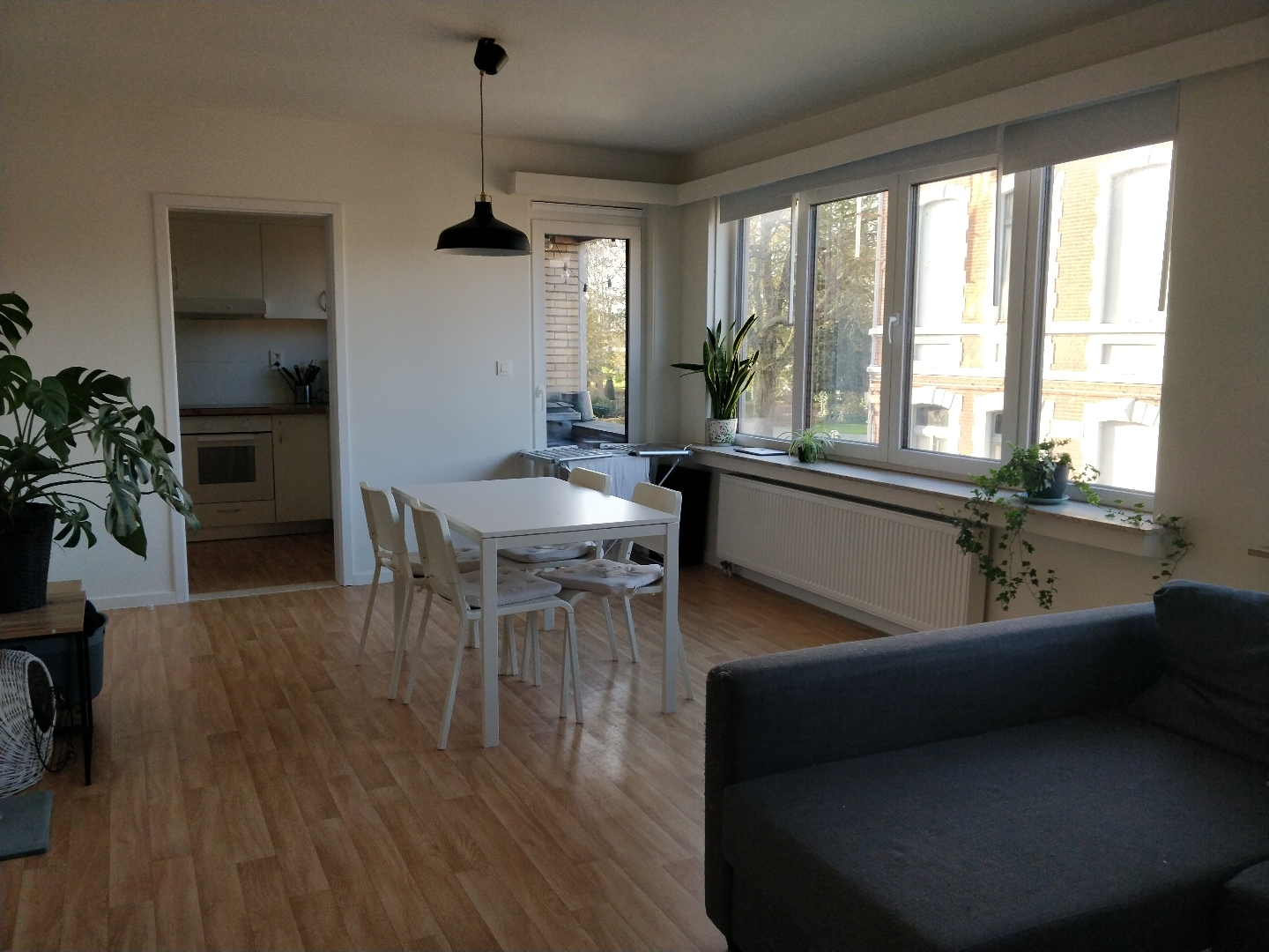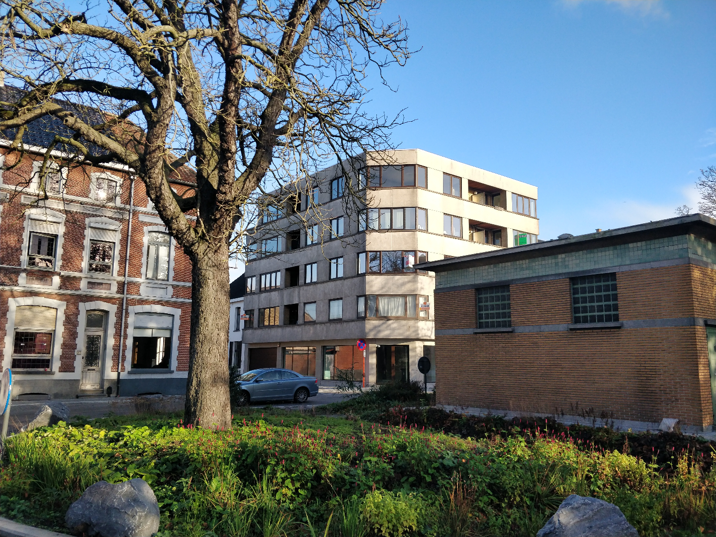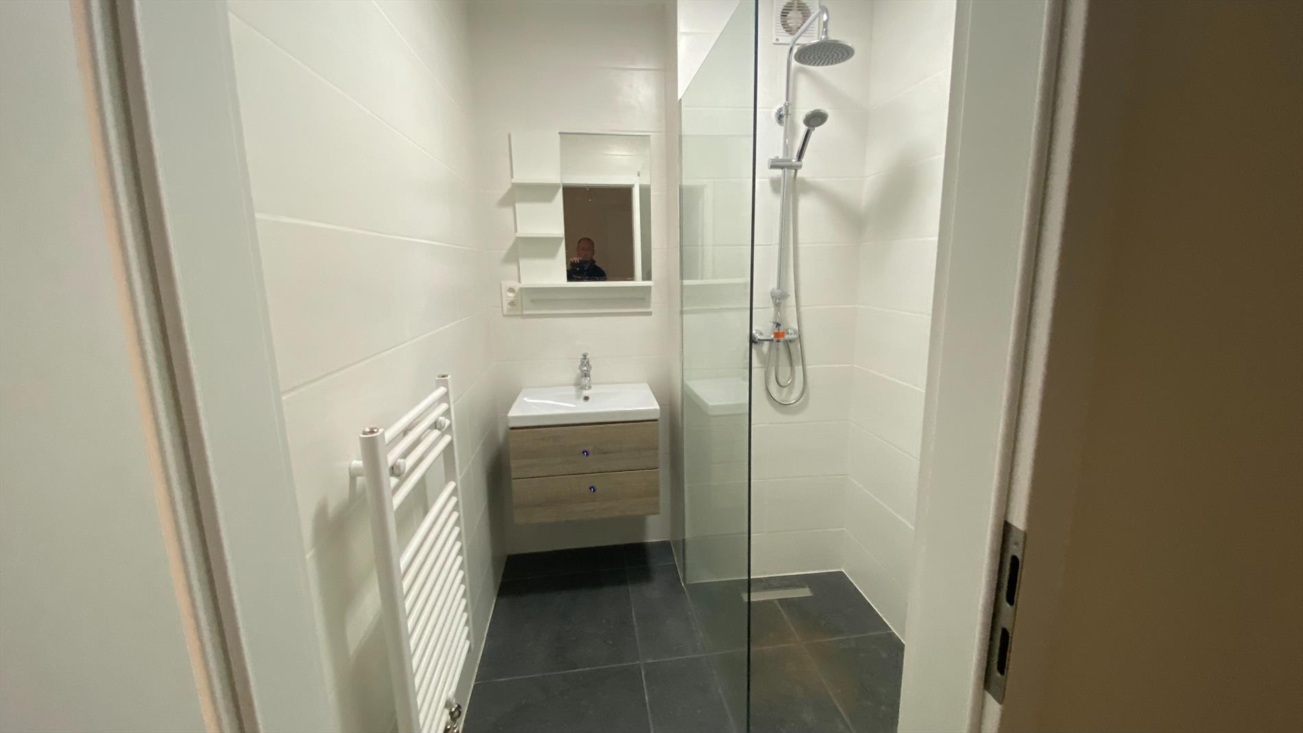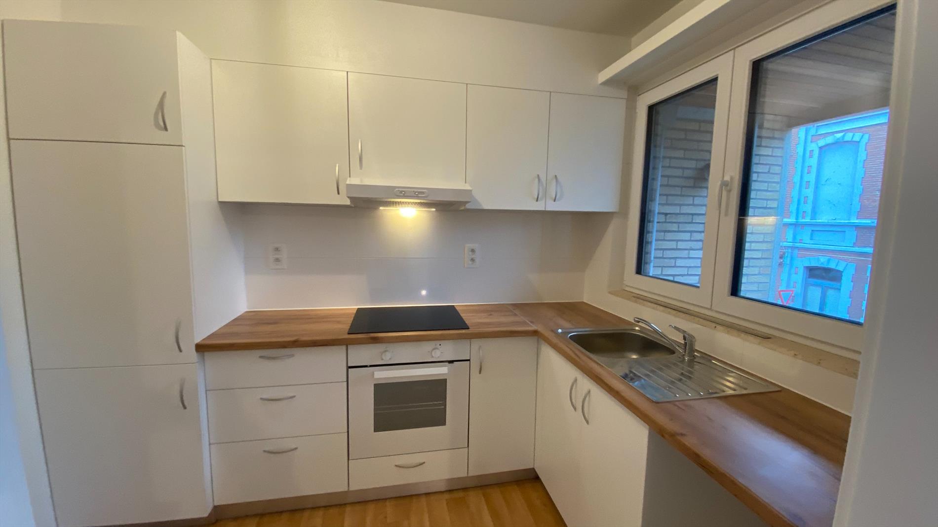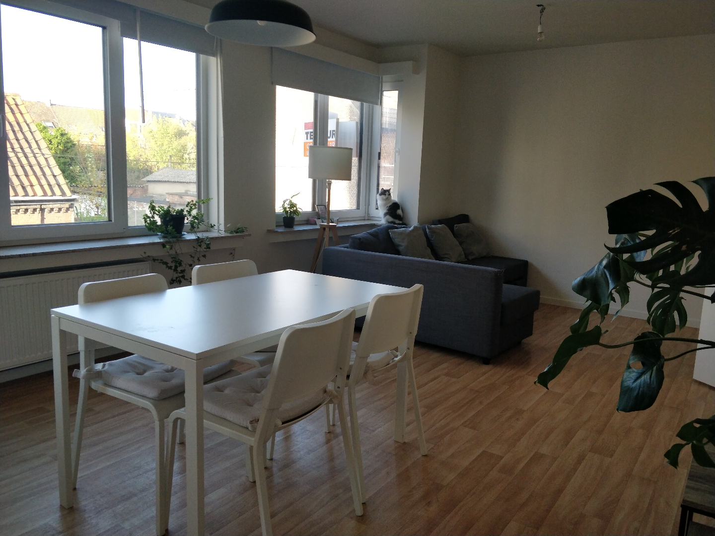 Appartement (1ste verdieping) in het centrum van Lokeren - nabij station, omvat: inkom - living - ingerichte keuken met toestellen - ingerichte badkamer met inloopdouche - afzonderlijk toilet - 2 slaapkamers - terras - lift