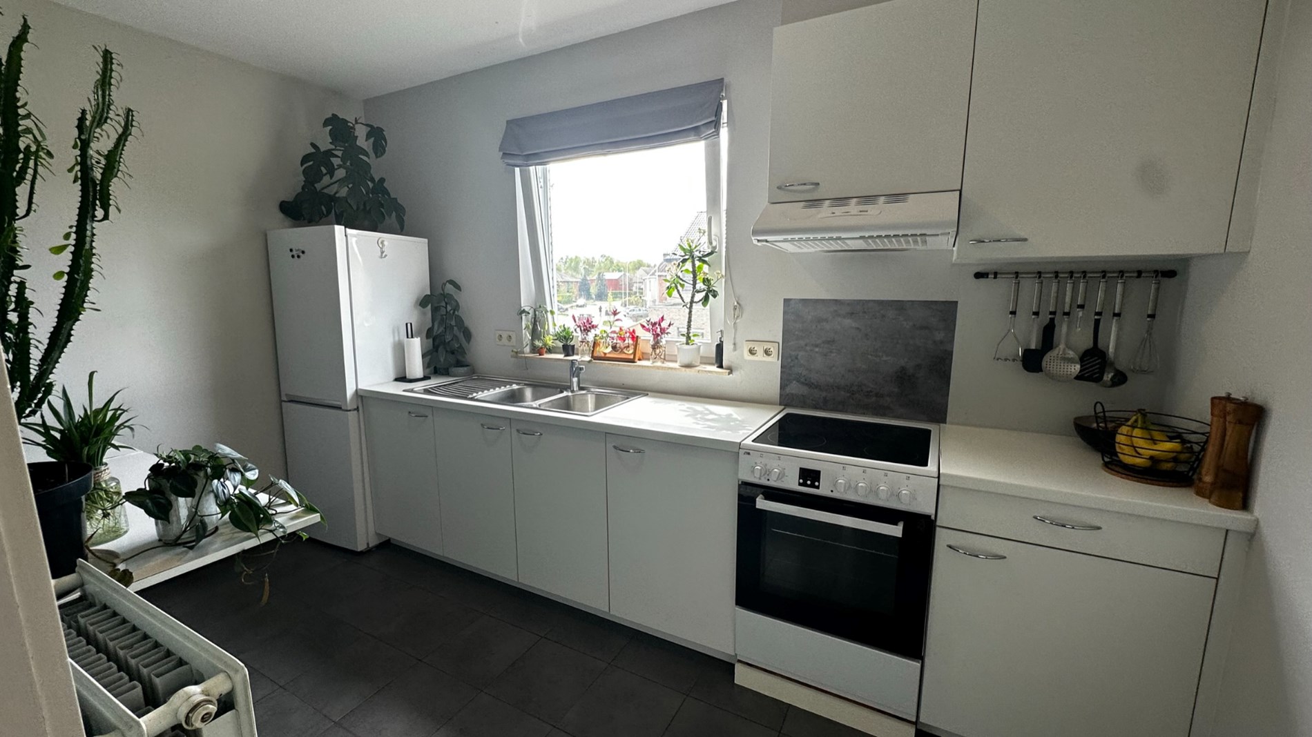 De huurprijs voor dit appartement bedraagt €675 per maand met een extra kost van €40 per maand. Dit is een goede prijs voor een appartement van deze grootte en kwaliteit in deze locatie. De keuken is ingericht en biedt voldoende ruimte om te koken. De woonkamer is licht en ruim en biedt veel natuurlijk licht dankzij de grote ramen.