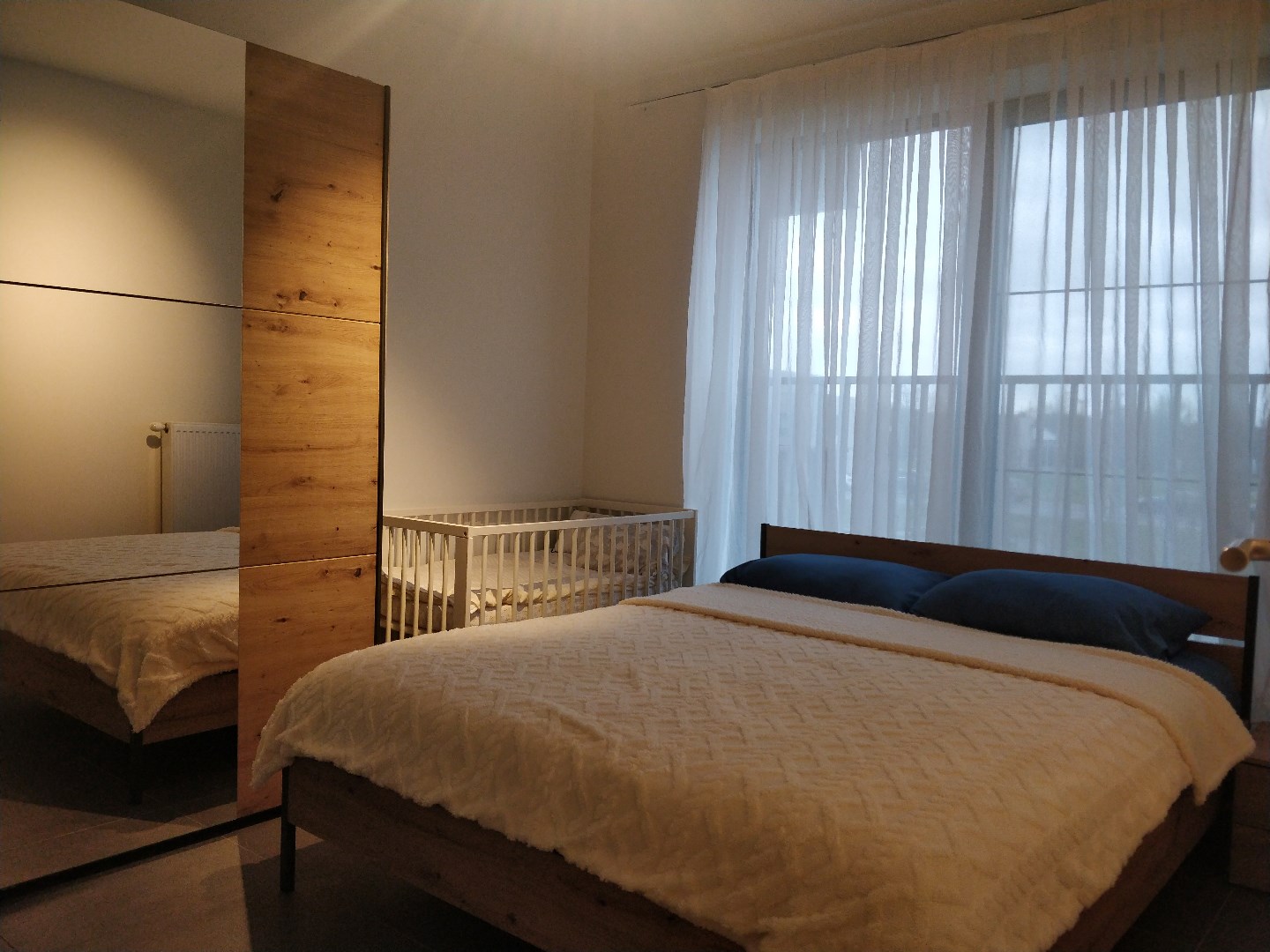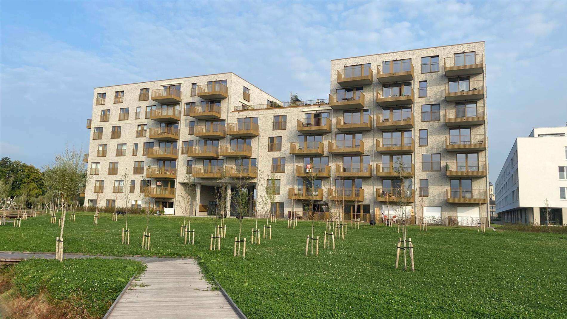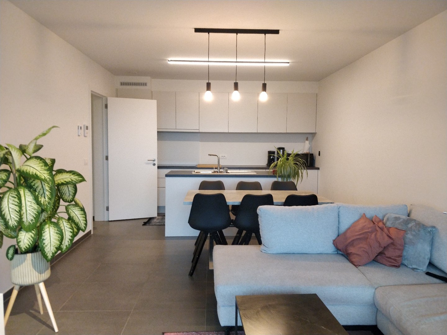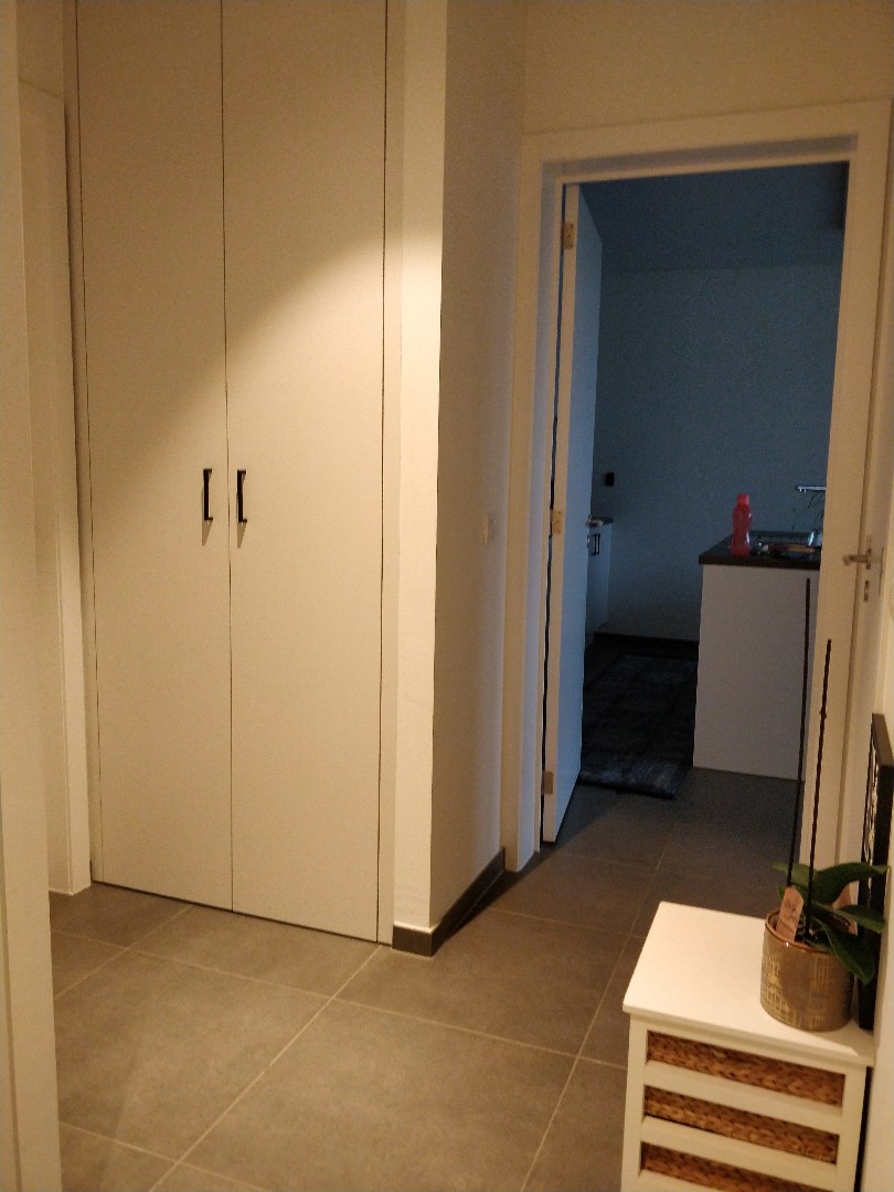 Dit appartement omvat een inkomhal met ingemaakte kast, wat zorgt voor handige opbergruimte. De living is voorzien van een open ingerichte keuken. Er zijn twee slaapkamers aanwezig. Een berging biedt extra opslagmogelijkheden. De badkamer is uitgerust met een inloopdouche voor extra comfort.