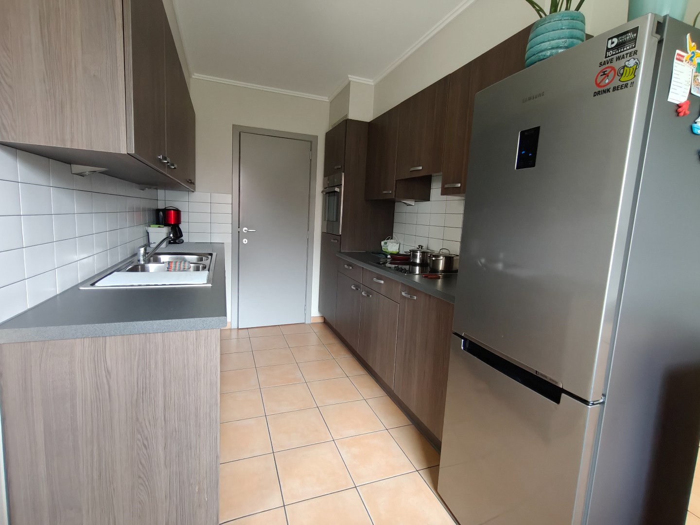 Bij het betreden van het appartement komt u terecht in de inkomhal die toegang biedt tot de living en de ingerichte keuken. De keuken is voorzien van een kookvuur, dampkap, oven en koelkast. Aansluitend bevindt zich een handige berging die extra opbergruimte biedt.