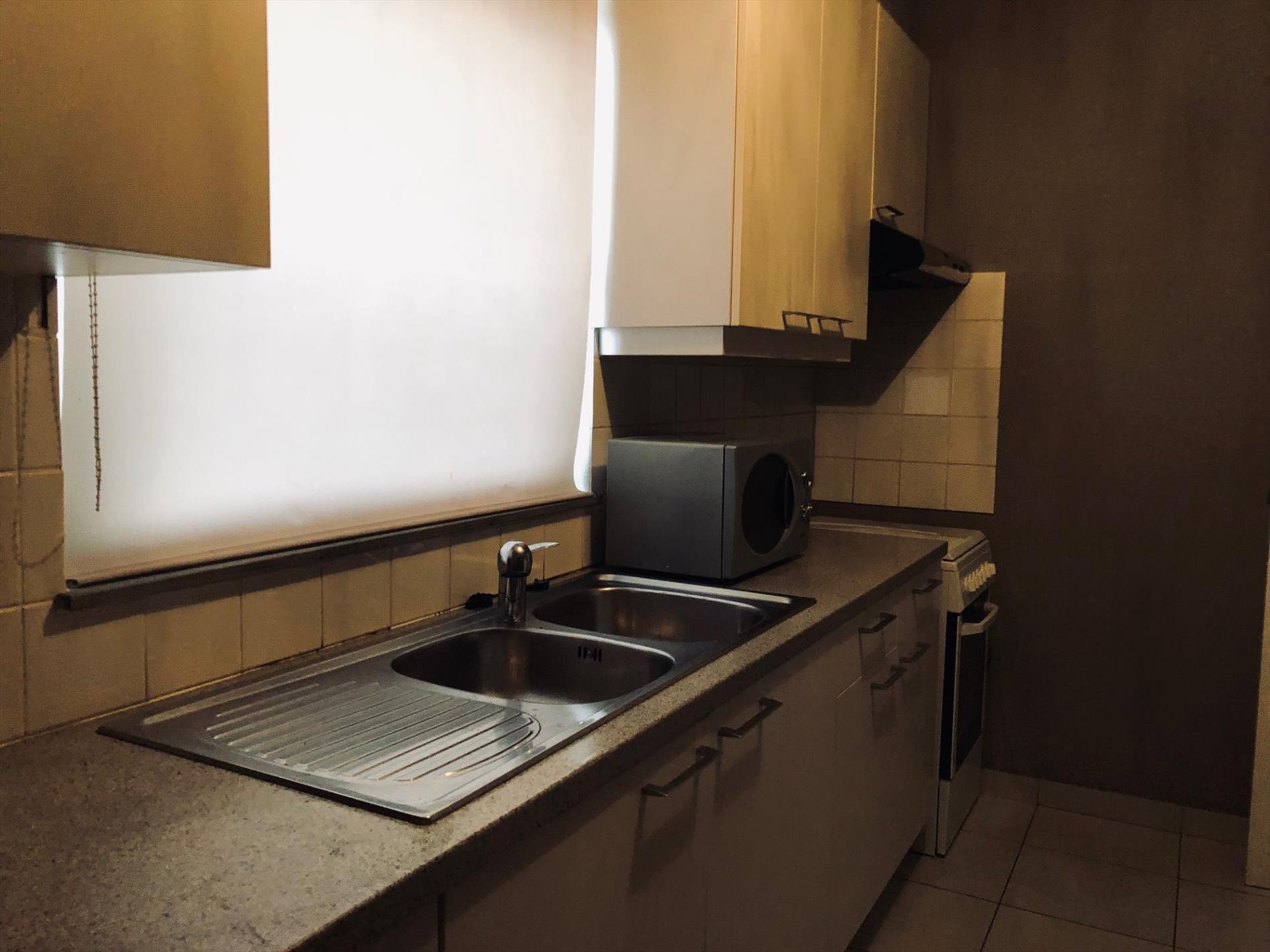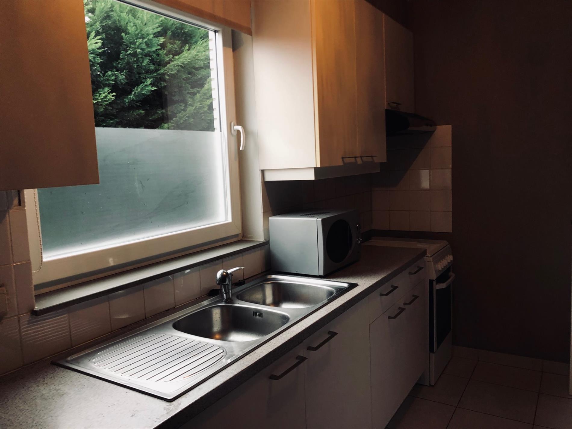 GERENOVEERD, GELIJKVLOERS appartement te Lokeren - Inkom - living - ingerichte keuken en badkamer - twee slaapkamers - bergplaats - garage box 1 - CV op gas - VRIj onmiddellijk
