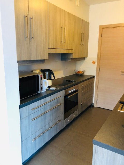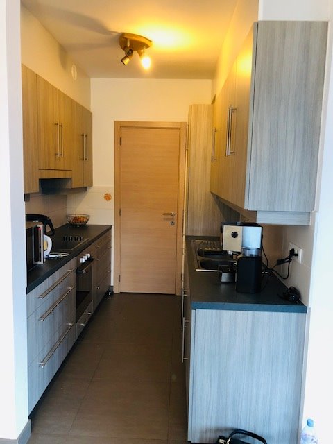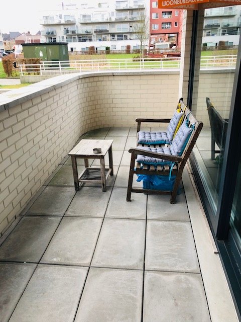 Appartement te Lokeren, gelijkvloers, inkom, living, ingerichte keuken met toestellen, berging, terras, twee slaapkamers,