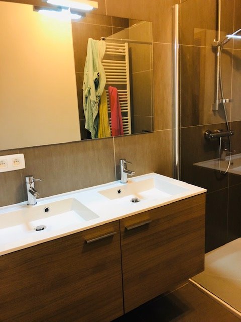 toilet, ingerichte badkamer met douche en lavabo met meubel, autostaanplaats nr 12 in de ondergrondse gemeenschappelijke garage en afgesloten bergplaats nr 8 in de ondergrondse garage - VRIJ 1/4/2019