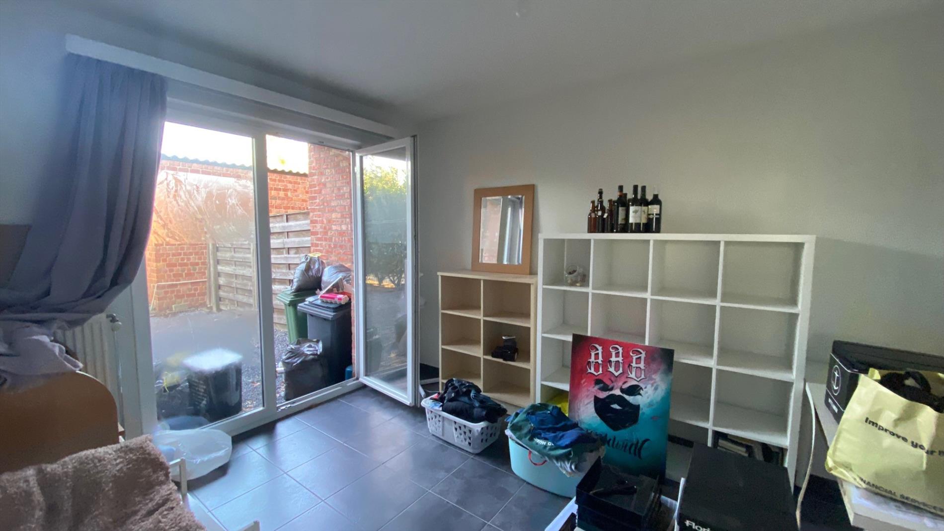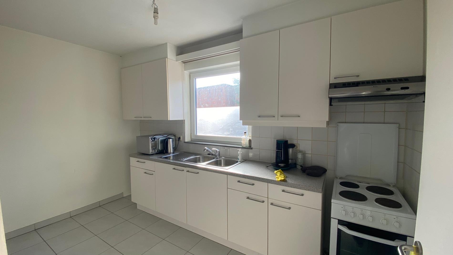 Gelijkvloers appartement te Lokeren - Inkom - living - ingerichte keuken - ingerichte badkamer - twee slaapkamers - bergplaats - tuin - garage box 1 - CV op gas