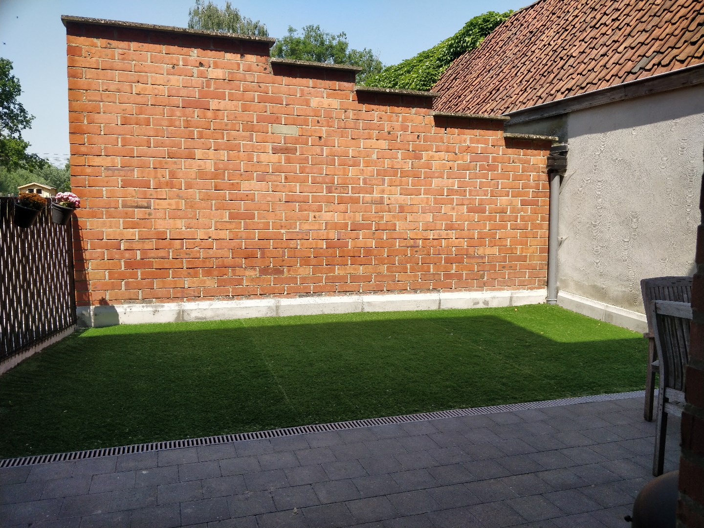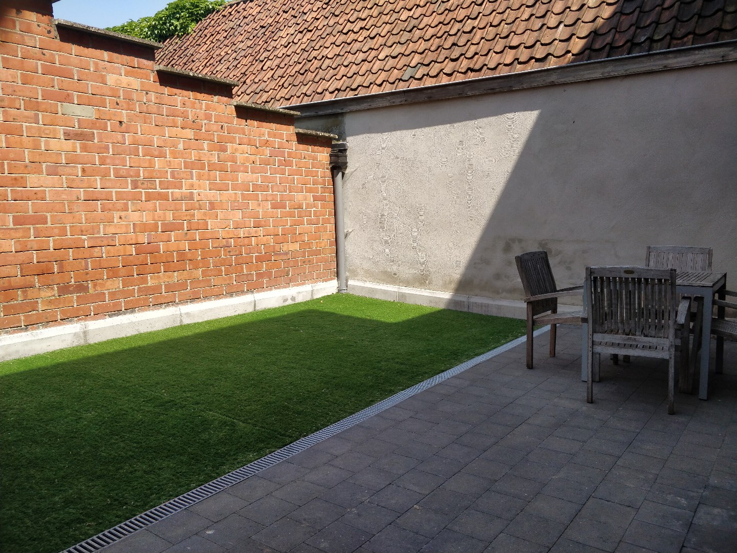 Het appartement heeft een ruim terras van 36m², dat deels betegeld en deels voorzien is van kunstgras. Daarnaast is er een garage inbegrepen en er is ook een gemeenschappelijke fietsenberging.