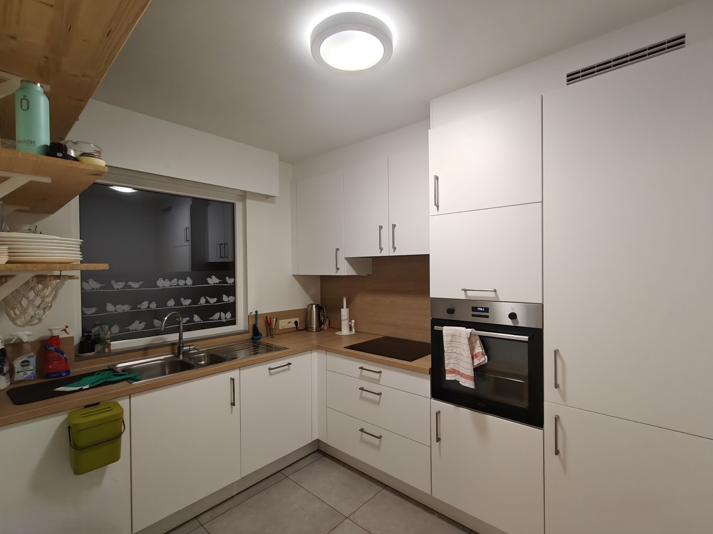 Bij binnenkomst vind je een ruime inkomhal die leidt naar de gezellige woonkamer. De ingerichte keuken is voorzien van een oven, inductie kookvuur, dampkap en koelkast.