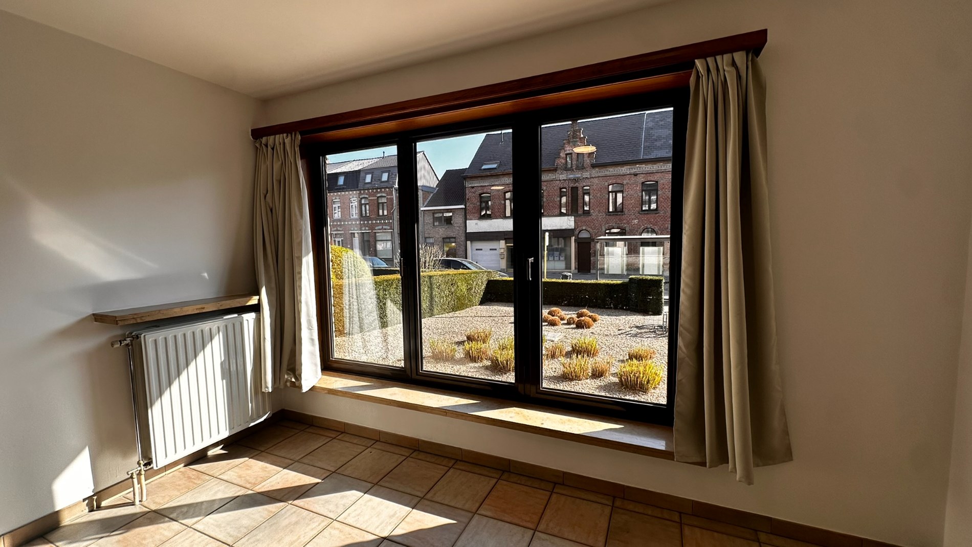 Bij binnenkomst betreedt u een inkomhal die leidt naar een ruime en lichtrijke living. De keuken is ingericht en voorzien van een kookvuur, dampkap en koelkast.