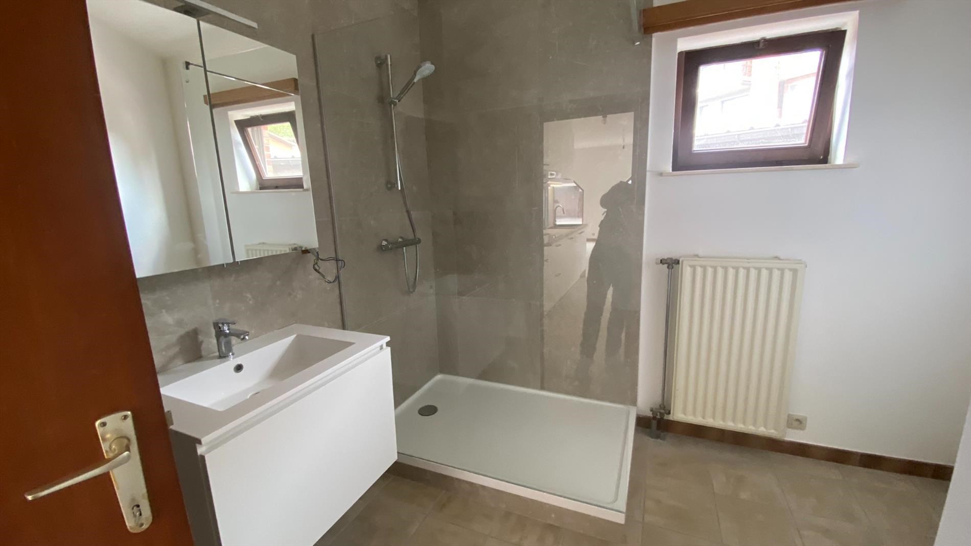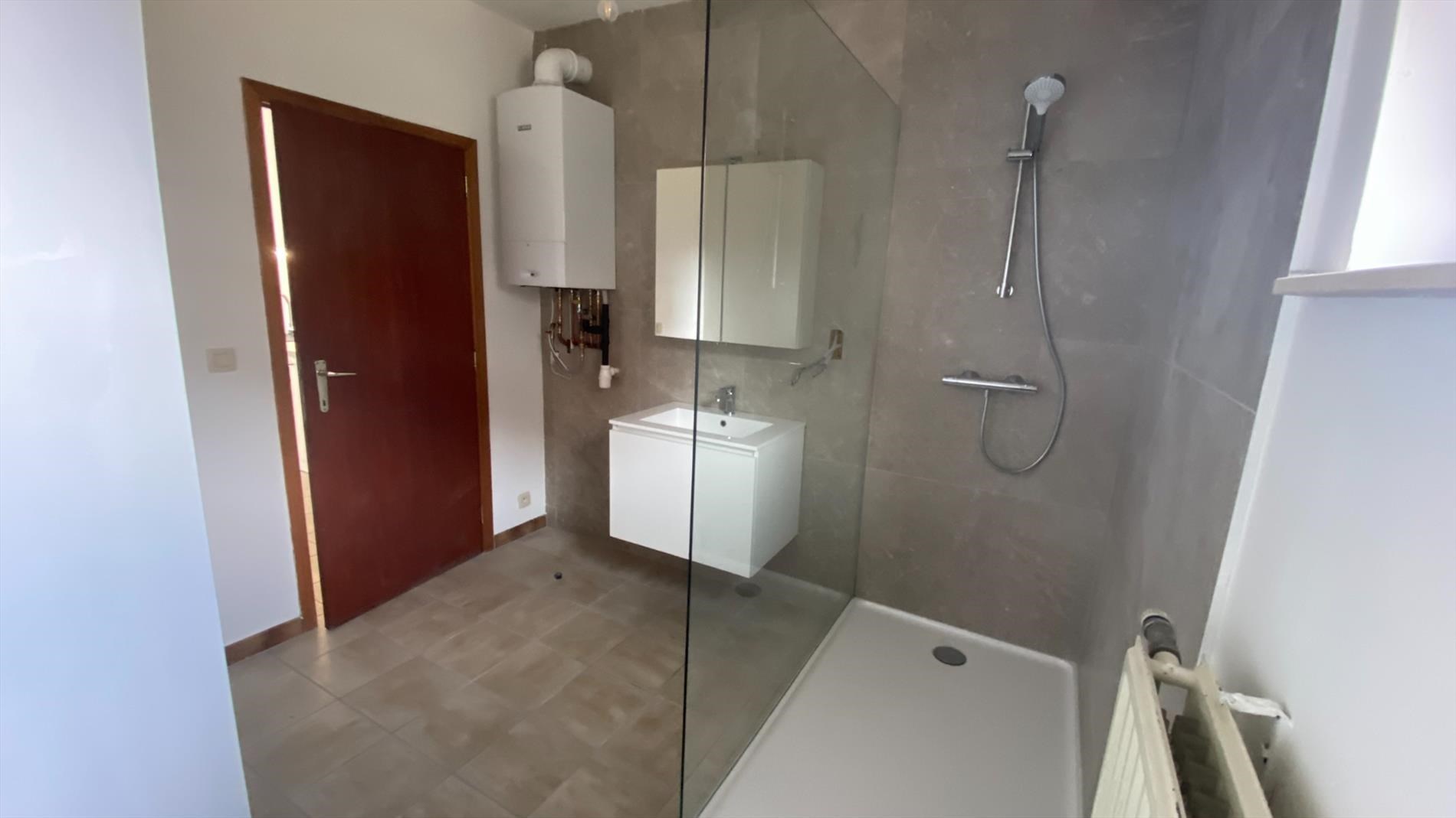De ingerichte badkamer is modern afgewerkt en voorzien van een inloopdouche, een wastafel met meubel en spiegel. Een apart toilet is aanwezig.