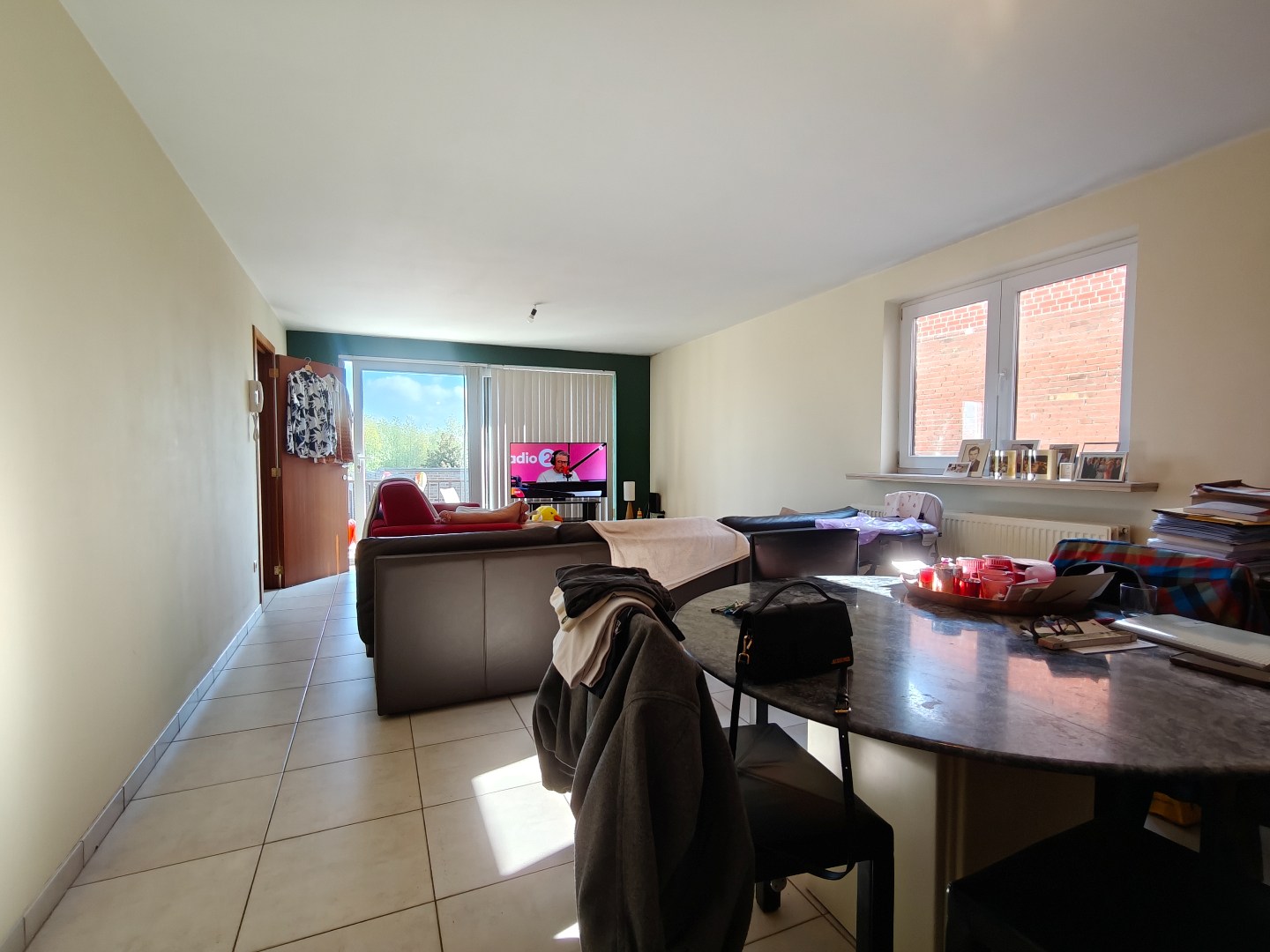 Bij het betreden van het appartement kom je in de inkomhal, die toegang geeft tot de gezellige woonkamer met voldoende lichtinval. Aansluitend bevindt zich de keuken, die functioneel is ingericht en alle nodige ruimte biedt voor dagelijks gebruik. Een aanpalende berging zorgt voor extra opslagmogelijkheden.
