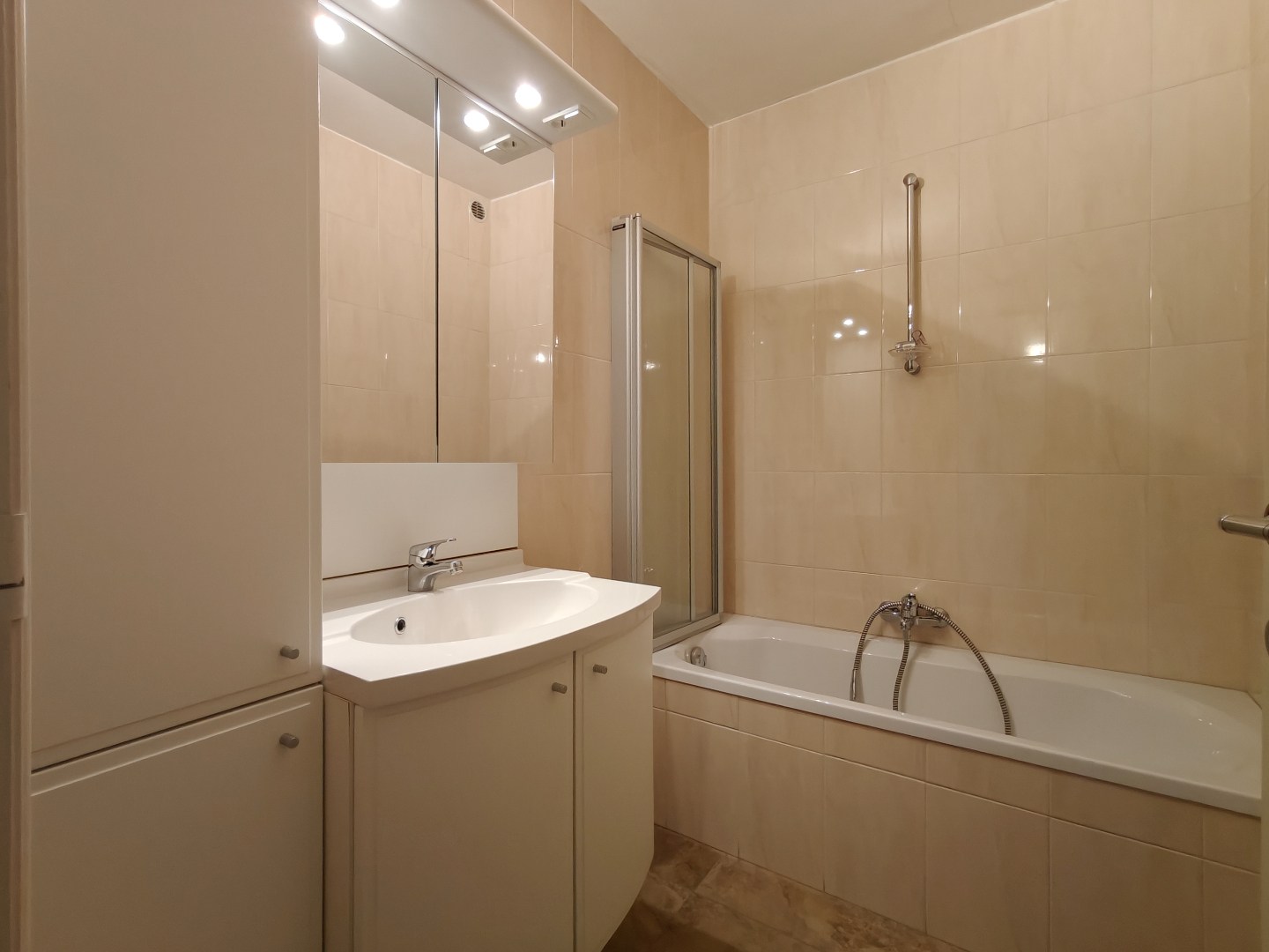 Het appartement beschikt over twee slaapkamers, ideaal voor een koppel. De ingerichte badkamer is uitgerust met een ligbad en een badkamermeubel. Een aparte toilet is aanwezig.