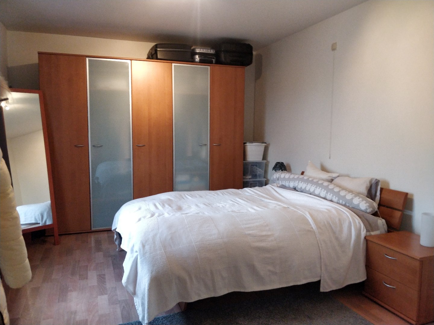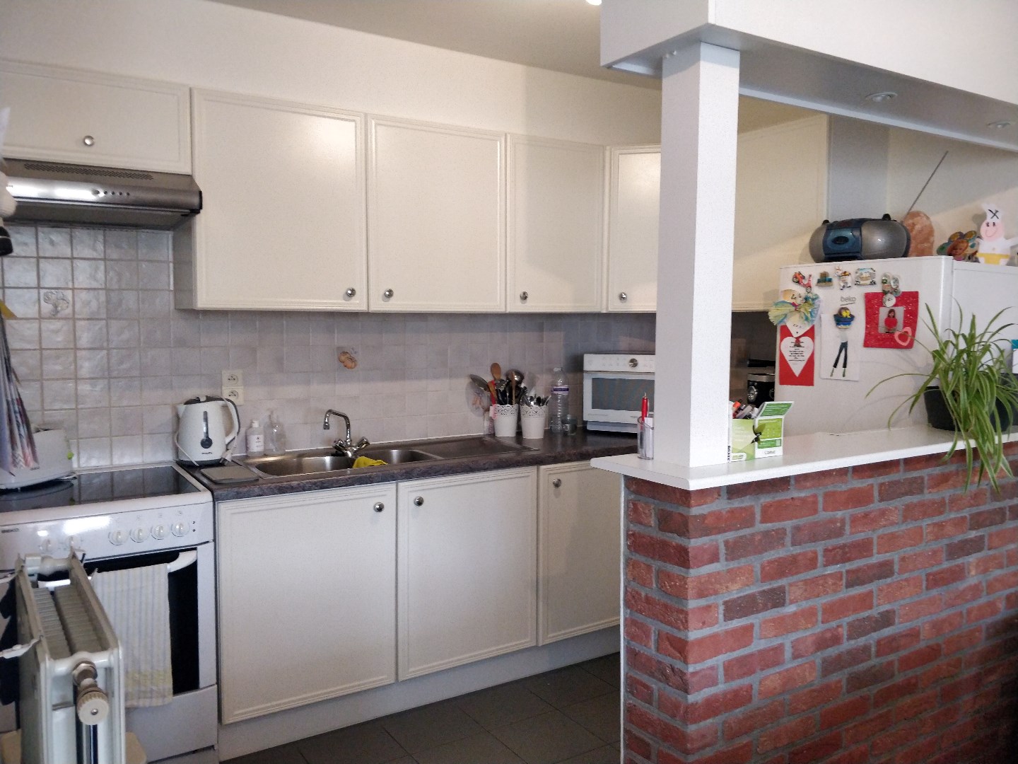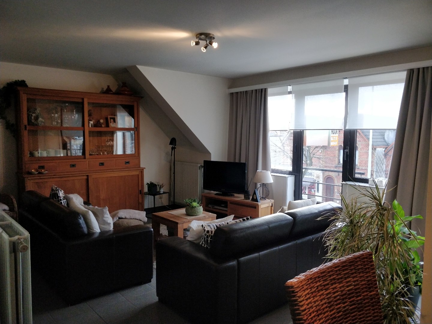 Dakappartement te Lokeren (2e verdieping) voorzien van: inkom - living - keuken - één slaapkamer - ingerichte badkamer met ligbad - afzonderlijk toilet - terras - garage - berging
