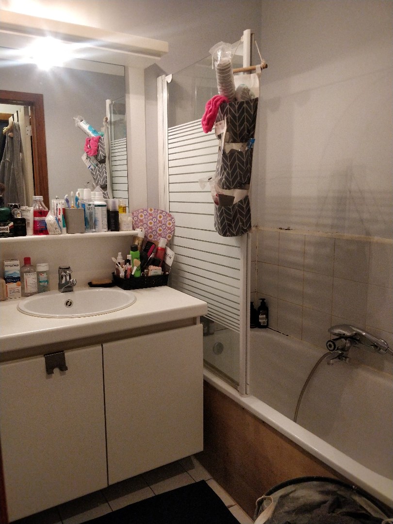 De ingerichte badkamer is uitgerust van een ligbad, lavabo en een toilet.