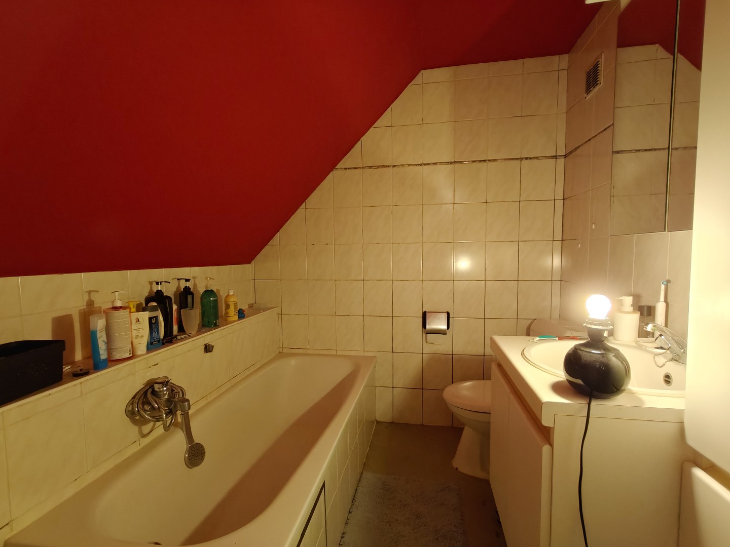 De badkamer is ingericht met een ligbad, een lavabo en een toilet. Er is één slaapkamer aanwezig in het appartement.