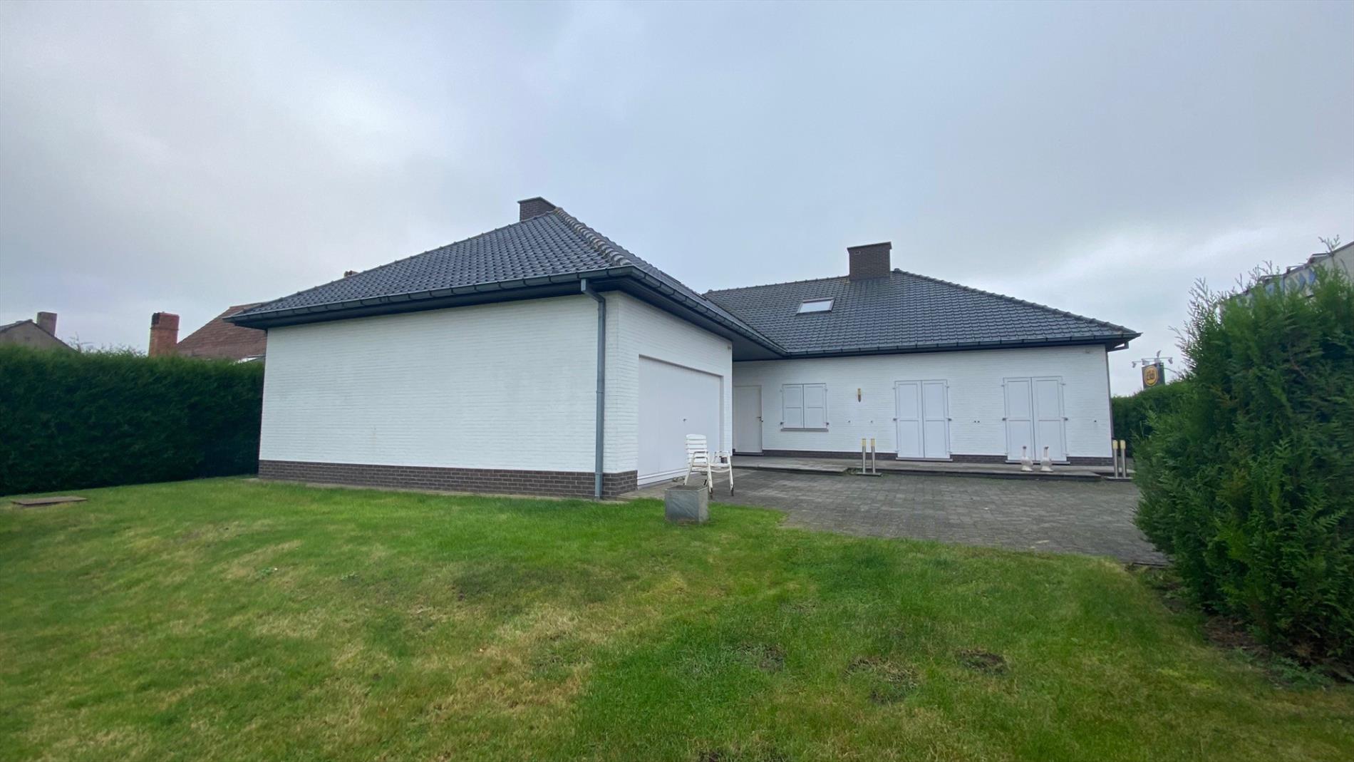 Bungalow in Lokeren, omvat: inkom - ingerichte keuken met toestellen - ruime living met haard - 3 slaapkamers - ingerichte badkamer met ligbad en douche - grote zolderruimte - garage - tuin met tuinhuis - beschikbaar: onmiddellijk