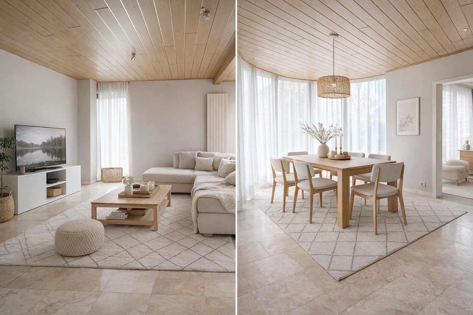 Bij het betreden van de woning kom je in de inkomhal, met aansluitend een bureauruimte, perfect voor thuiswerk of een rustige hobbyruimte. De ruime living vormt het hart van de woning en is voorzien van een gezellige open haard, die zorgt voor een warme en uitnodigende sfeer. Aansluitend bevindt zich de volledig ingerichte keuken, uitgerust met een vaatwasser, combi-oven, koelkast, diepvries, kookvuur en dampkap, waardoor kookcomfort gegarandeerd is.