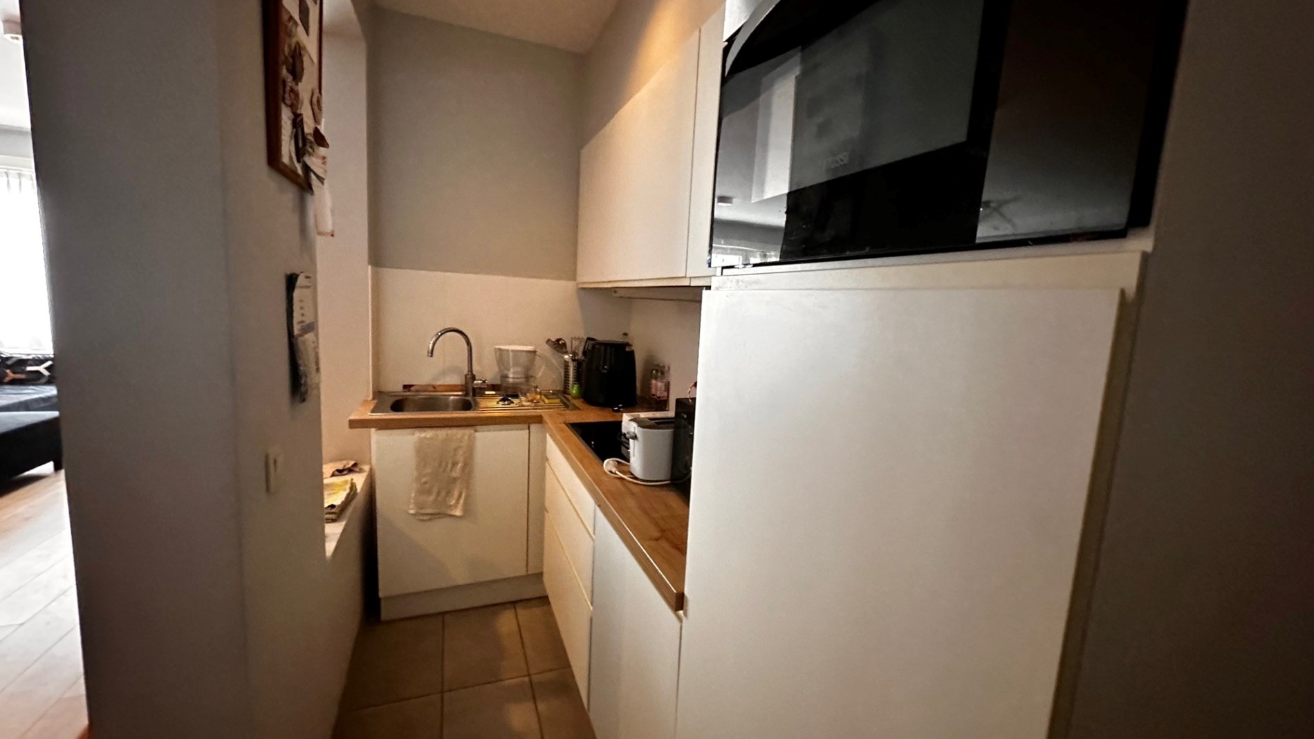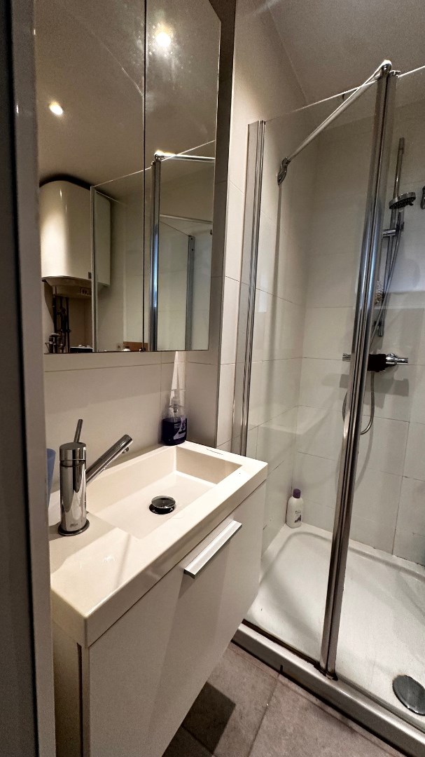 Deze gezellige en praktische studio (1ste verdieping) biedt een comfortabele en moderne woonruimte, ideaal voor een alleenstaande of koppel. De woon- en slaapruimte zijn slim geïntegreerd om optimaal gebruik te maken van de beschikbare ruimte. De moderne keuken is volledig uitgerust, wat het dagelijkse gebruik eenvoudig en aangenaam maakt. De badkamer beschikt over een moderne douche en toilet.