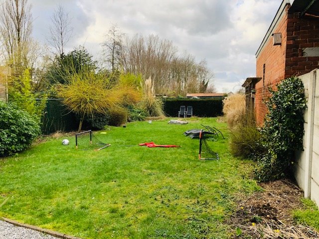 Voorzien van inkom met trap en toilet - ruime living - ingerichte keuken en badkamer - berging - koele berging - grote garage - drie ruime slaapkamers - grote tuin - CV op GAS - VRIJ 06/2019