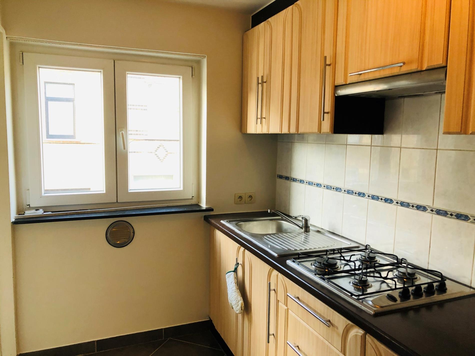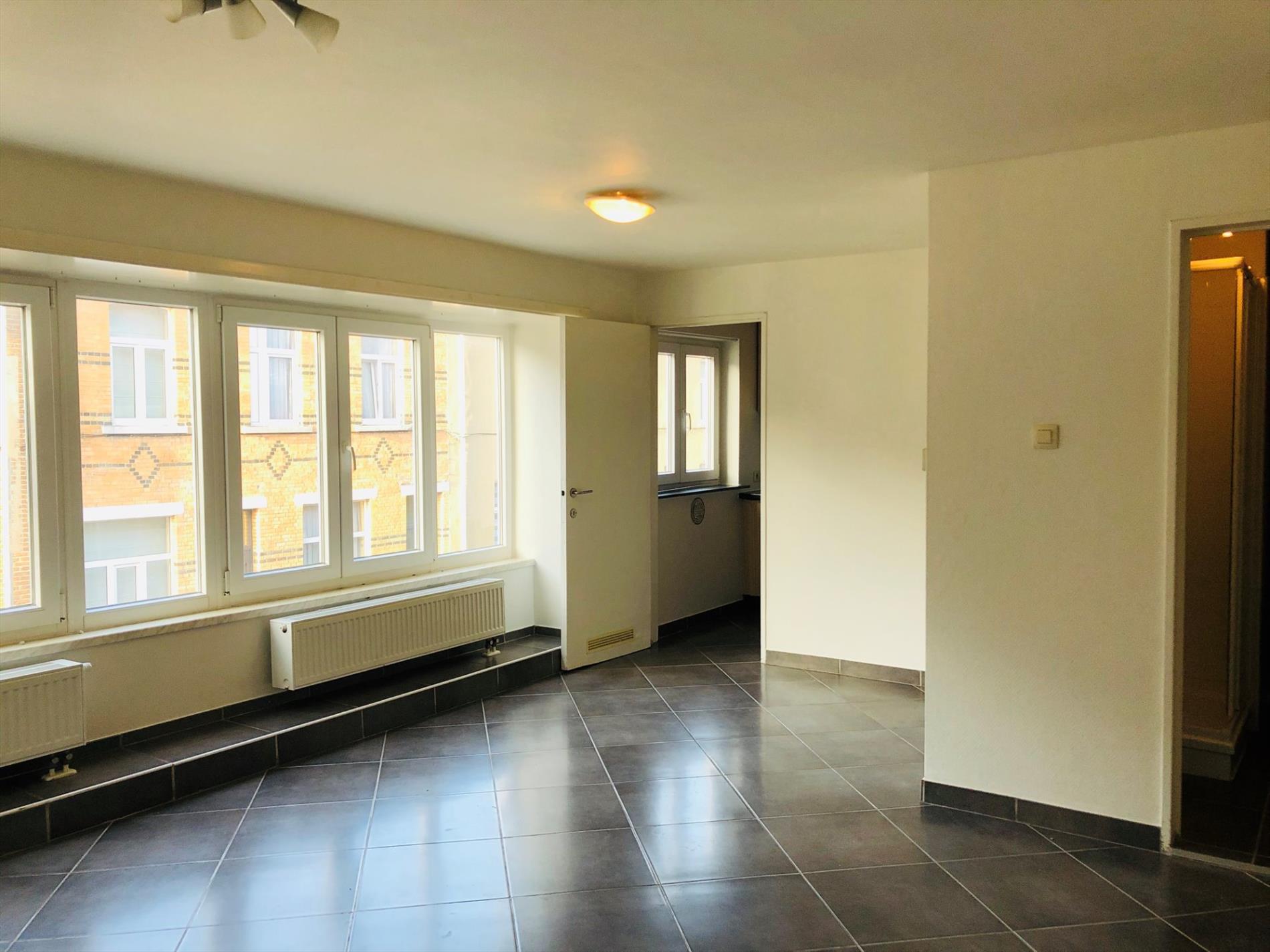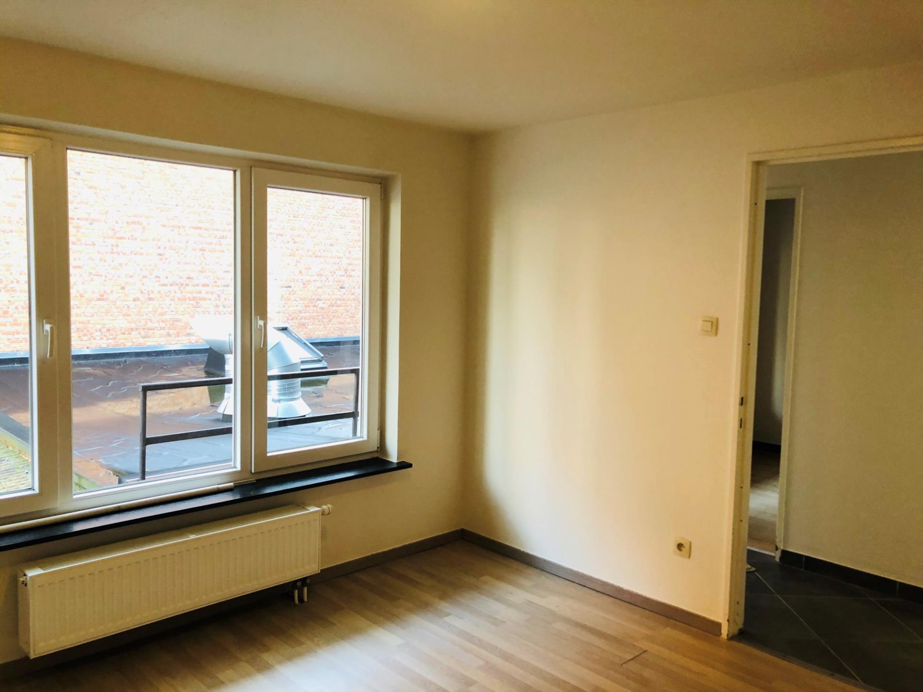 Instapklaar appartement te Lokeren op eerste verdieping: inkom, ingerichte keuken, ingerichte badkamer, twee slaapkamers - cv op gas - onmiddellijk beschikbaar