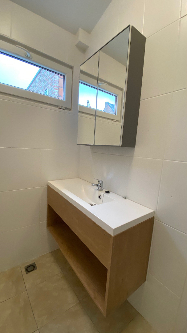 Woning in het centrum van Lokeren, omvat: inkom - living - ingerichte keuken - berging - ingerichte badkamer met douche - 2 slaapkamers - koer - beschikbaar: onmiddellijk