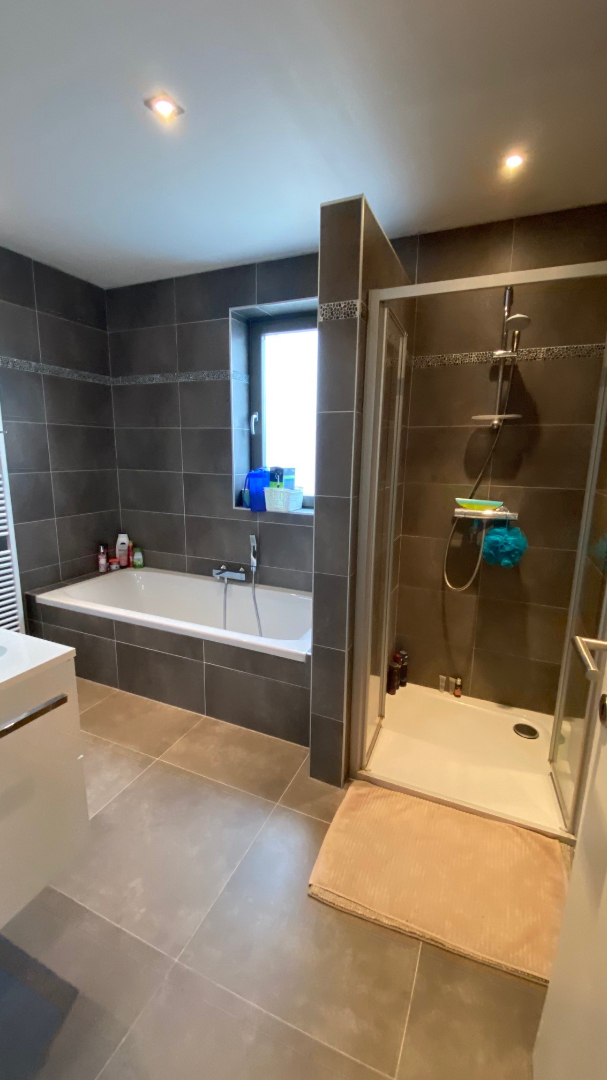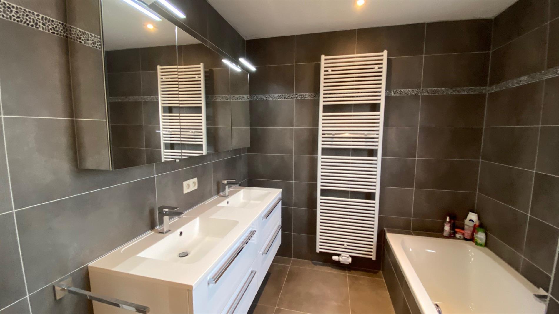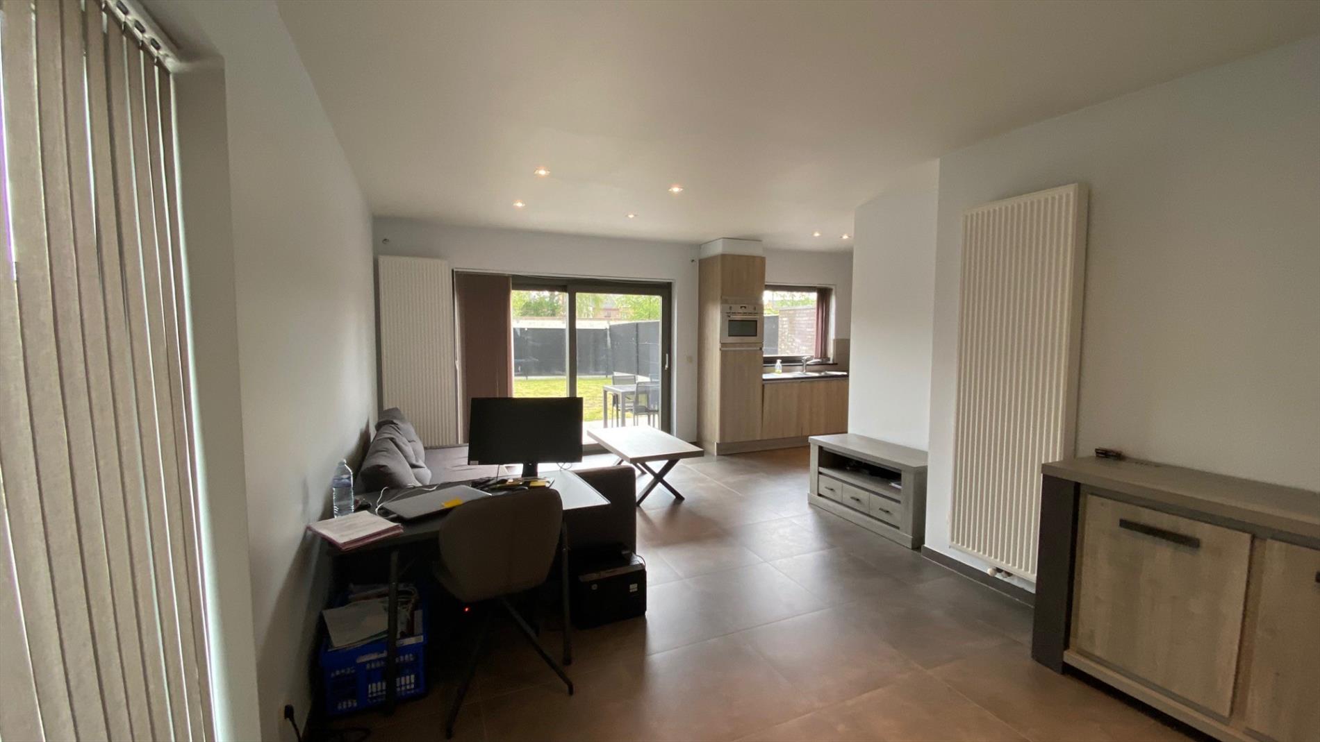 voorzien van inkom, apart toilet, ruime living, ingerichte keuken met alle toestellen, berging en garage, drie slaapkamers, badkamer met douche, ligbad en badkamermeubel, apart toilet, doucheruimte en zolder, oprit, terras en tuin - vrij: 01/06/2021