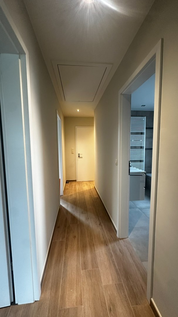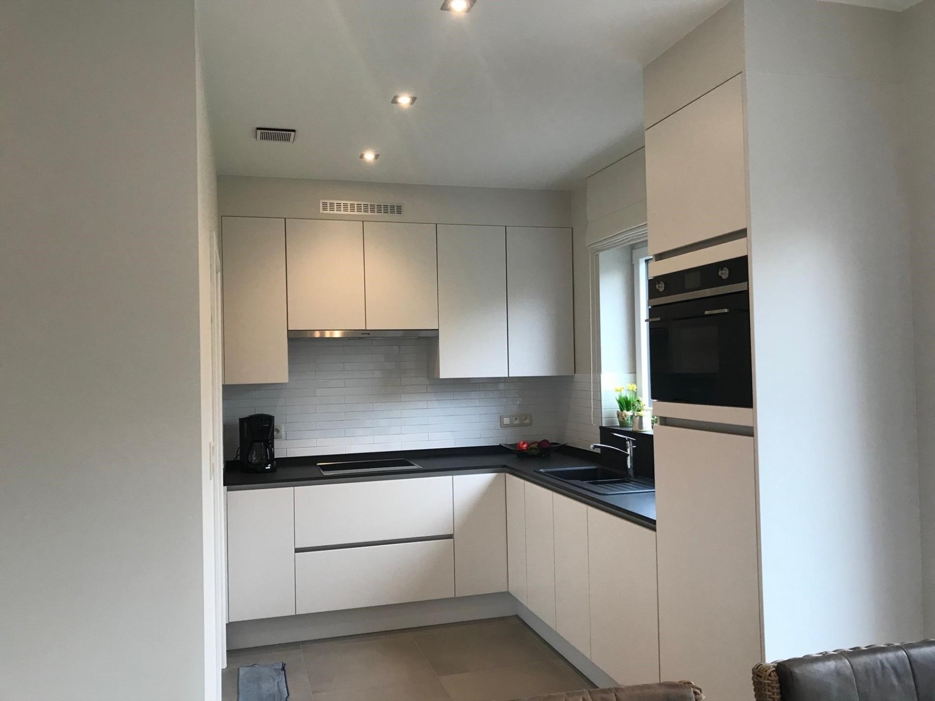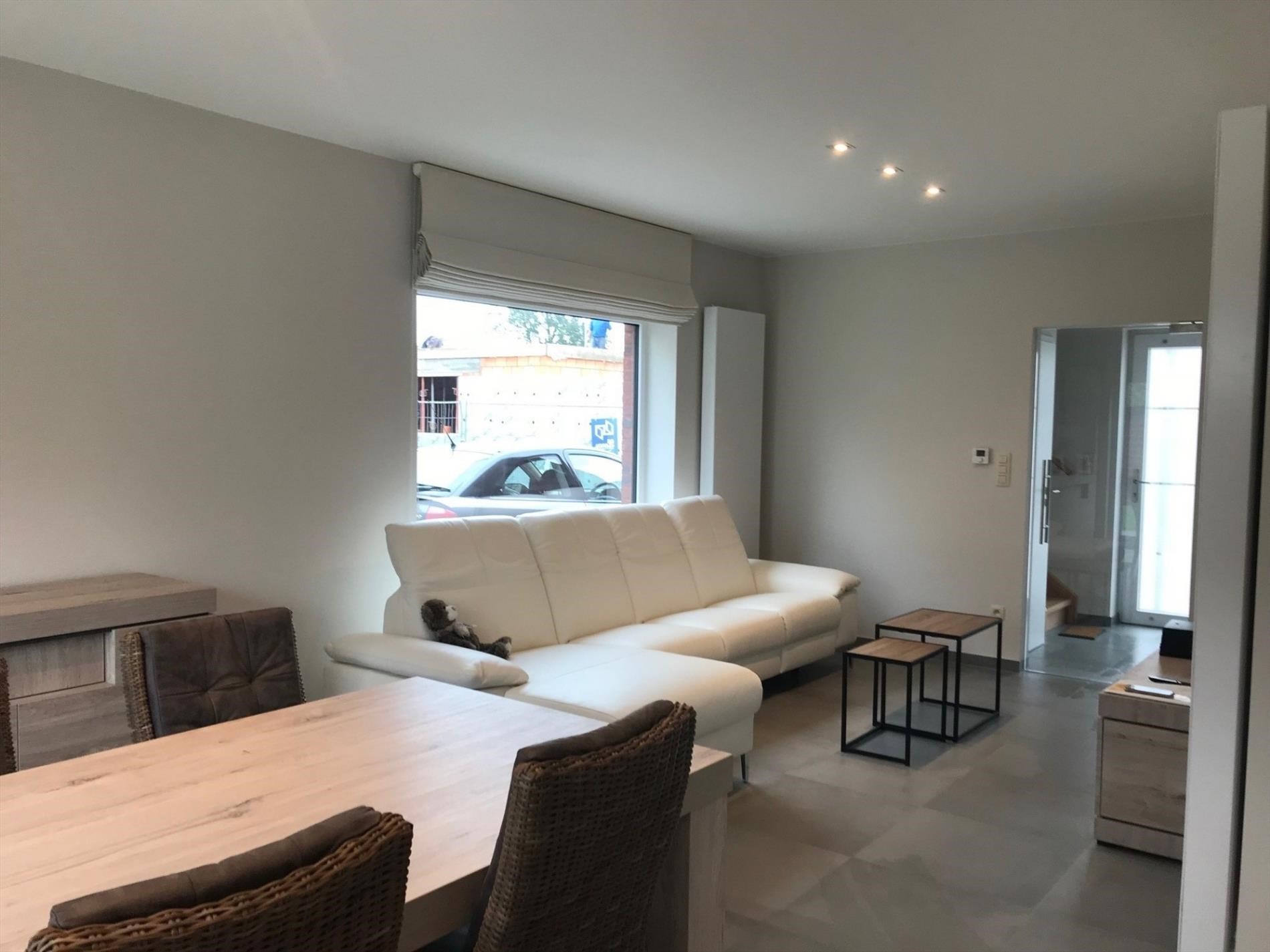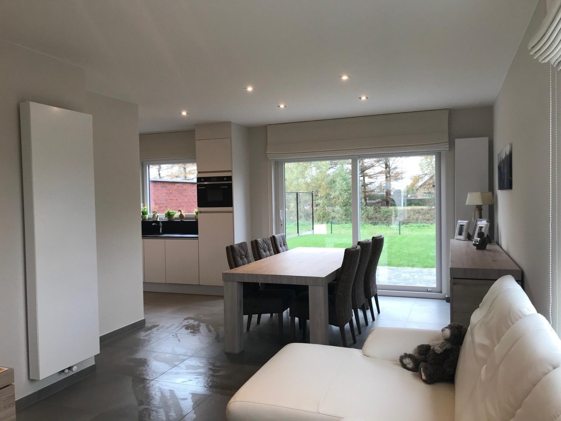 Bij het betreden van de woning word je verwelkomd in de inkomhal die toegang geeft tot een lichte en ruime woonkamer met mooie uitkijk op de tuin. De moderne keuken is volledig ingericht en voorzien van alle toestellen.