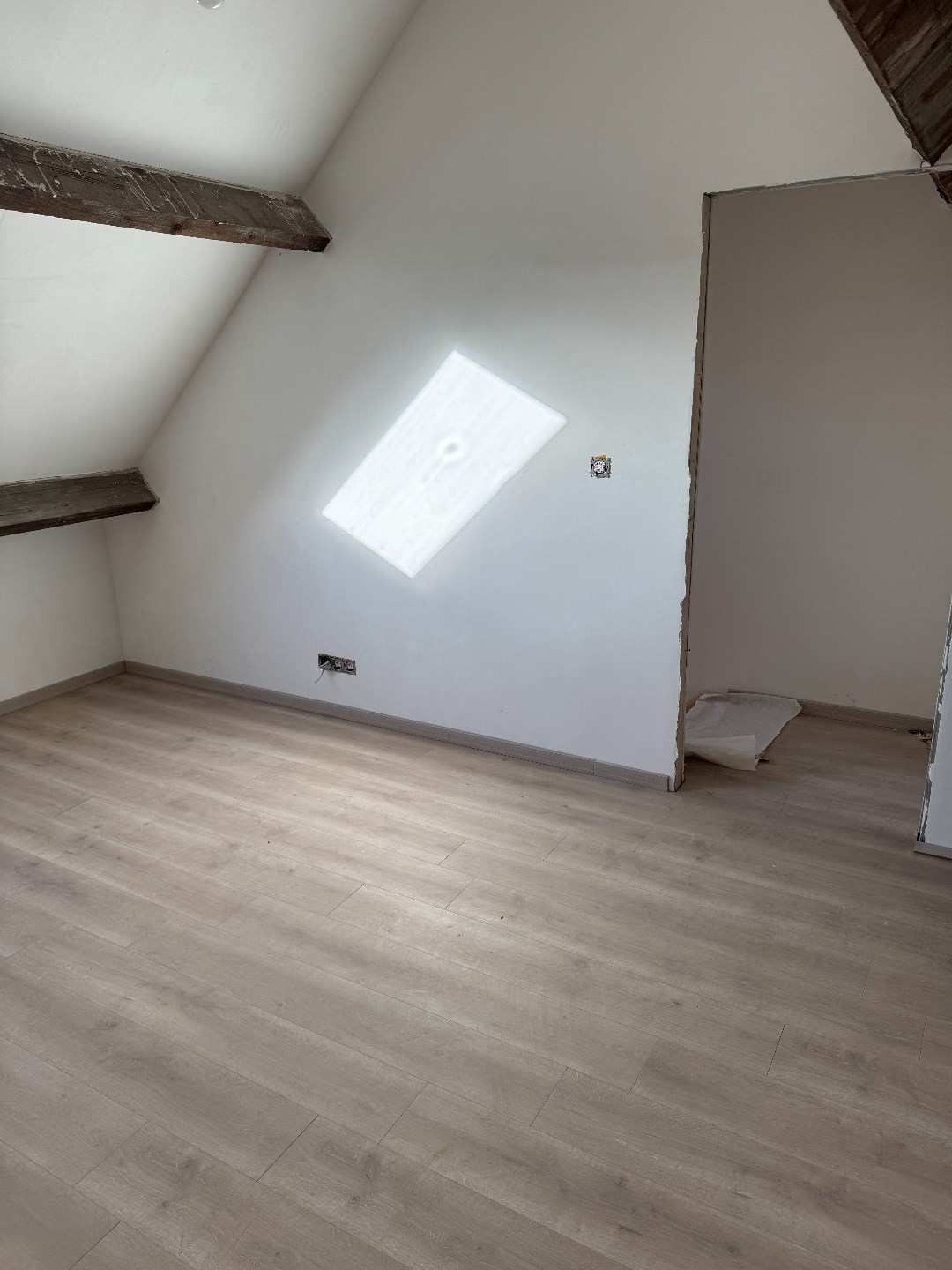 De keuken is volledig nieuw en uitgerust met moderne toestellen, ingerichte badkamer met inloopdouche. Op de eerste verdieping vindt u twee ruime slaapkamers, perfect als slaap- en werkruimte. De afgewerkte zolder biedt extra mogelijkheden, zoals een hobbykamer, bureau of derde slaapkamer.