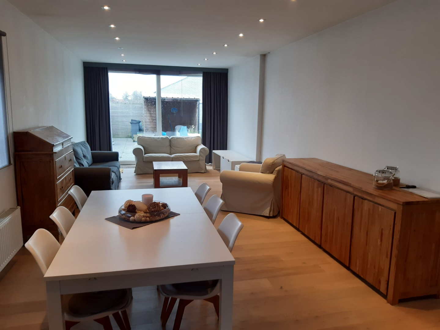Deze woning is voorzien van inkom met trap en toilet - berging - ingerichte keuken met toestellen - ruime living met parket en veel lichtinval - op de eerste verdieping is er een overloop met ingemaakte kasten - ingerichte badkamer met bad en douche & een eerste slaapkamer -op de tweede verdieping heb je nog 2 slaapkamers met ingemaakte kasten - tuin - tuinberging - CV op gas.