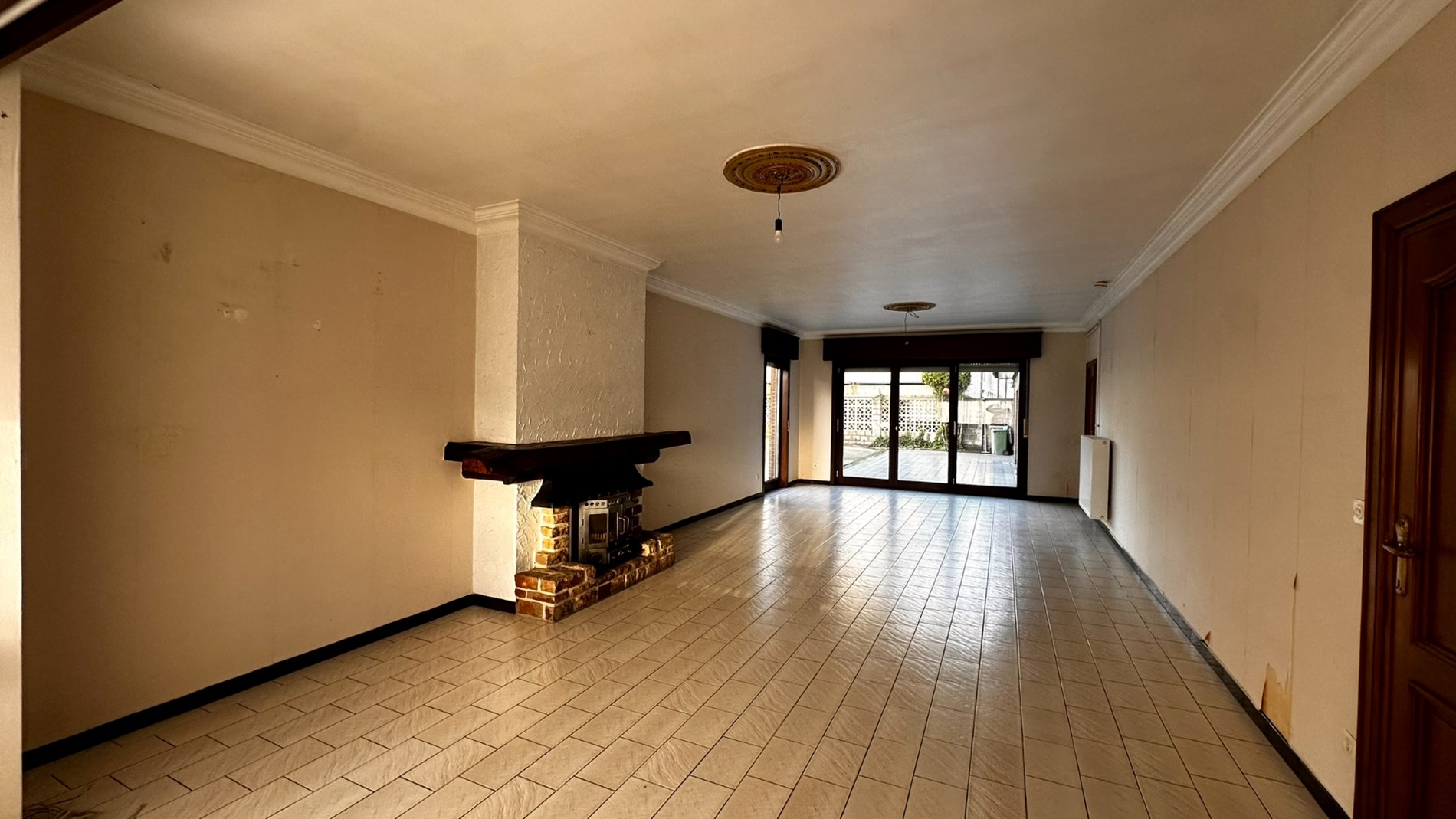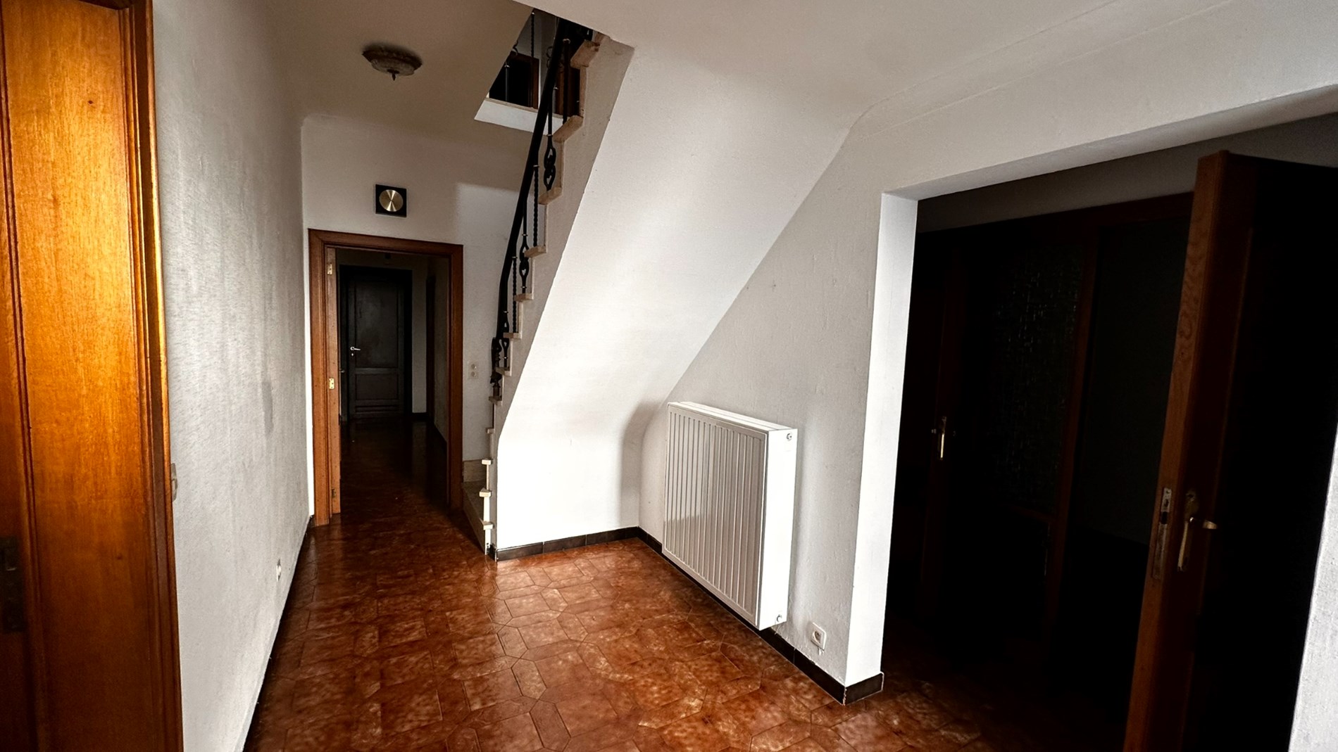 Bij binnenkomst betreedt u een inkomhal die leidt naar een ruime living, perfect voor ontspanning. Aangrenzend bevindt zich een grote keuken, voorzien van voldoende werkruimte, ideaal voor wie graag kookt. Daarnaast is er een handige berging die extra opbergruimte biedt.