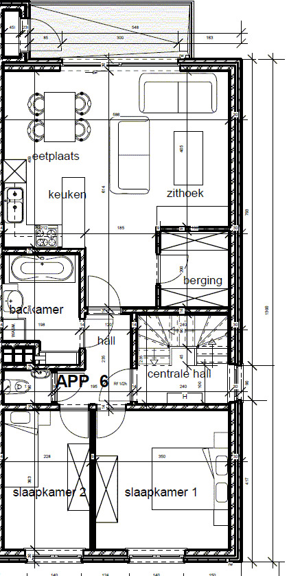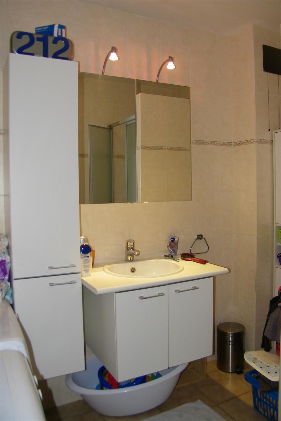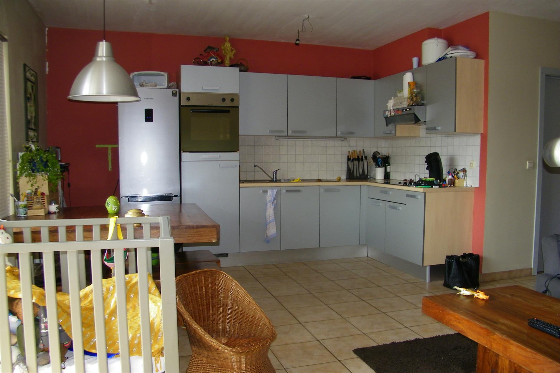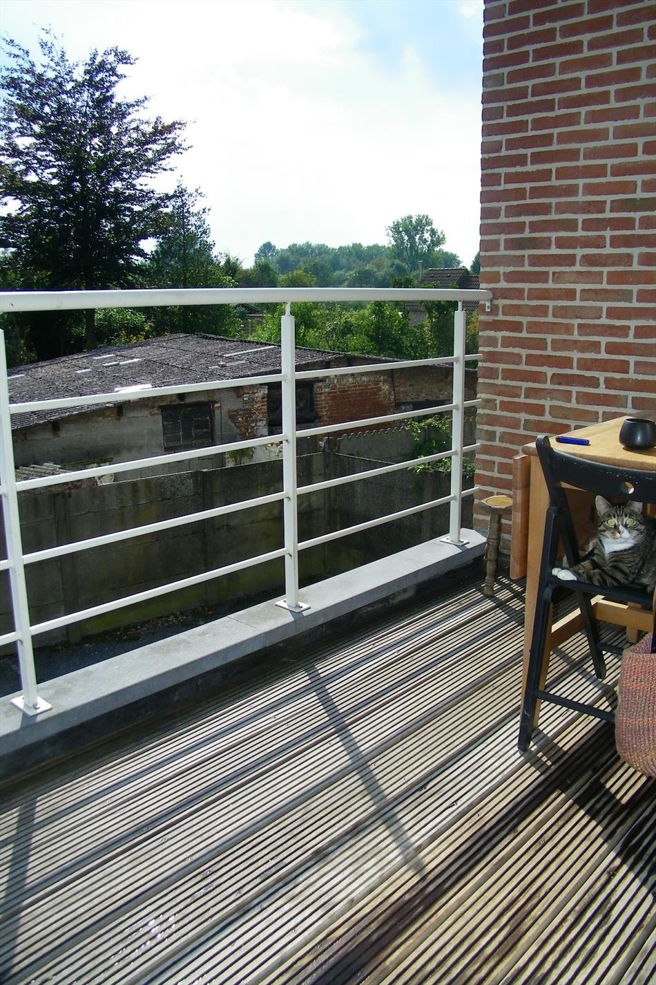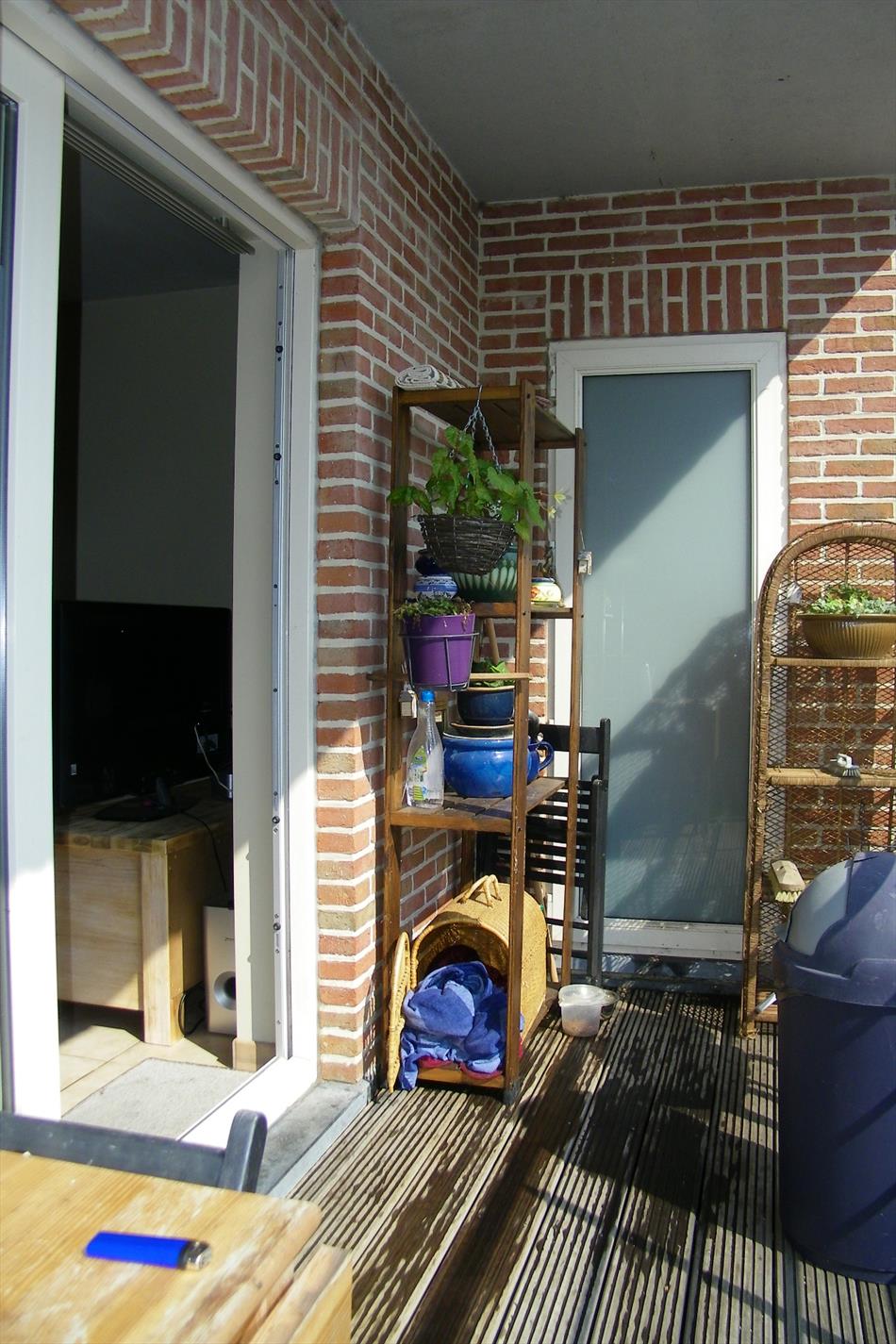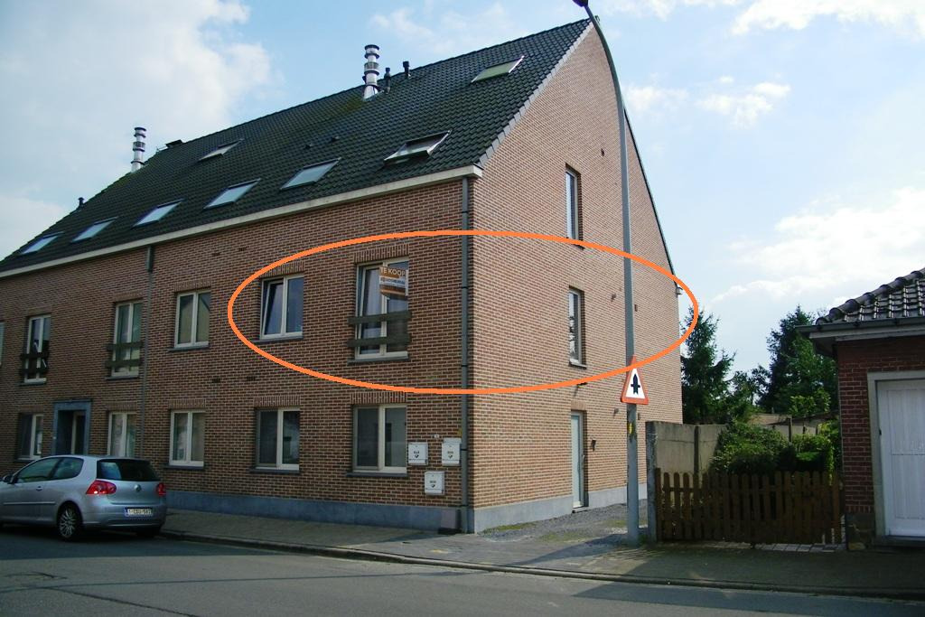 Op de eerste verdieping - voorzien van inkom, living, ingerichte keuken, berging, ingerichte badkamer met douche, terras, 2 slaapkamers, autostaanplaats in gemeenschappelijke garage - CV/gas