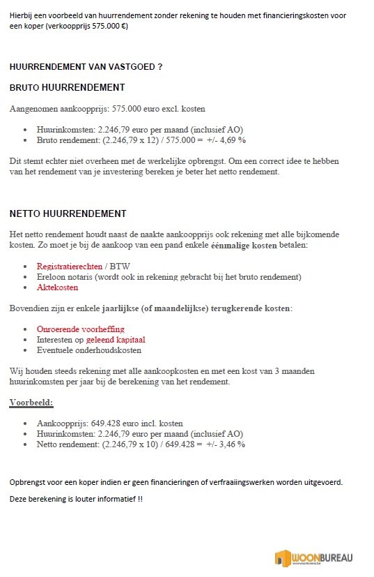 Het complex is ideaal als opbrengsteigendom. Alle appartementen zijn momenteel verhuurd. Het nettorendement bedraagt ca. 3,5 %.