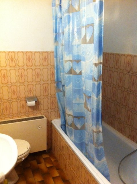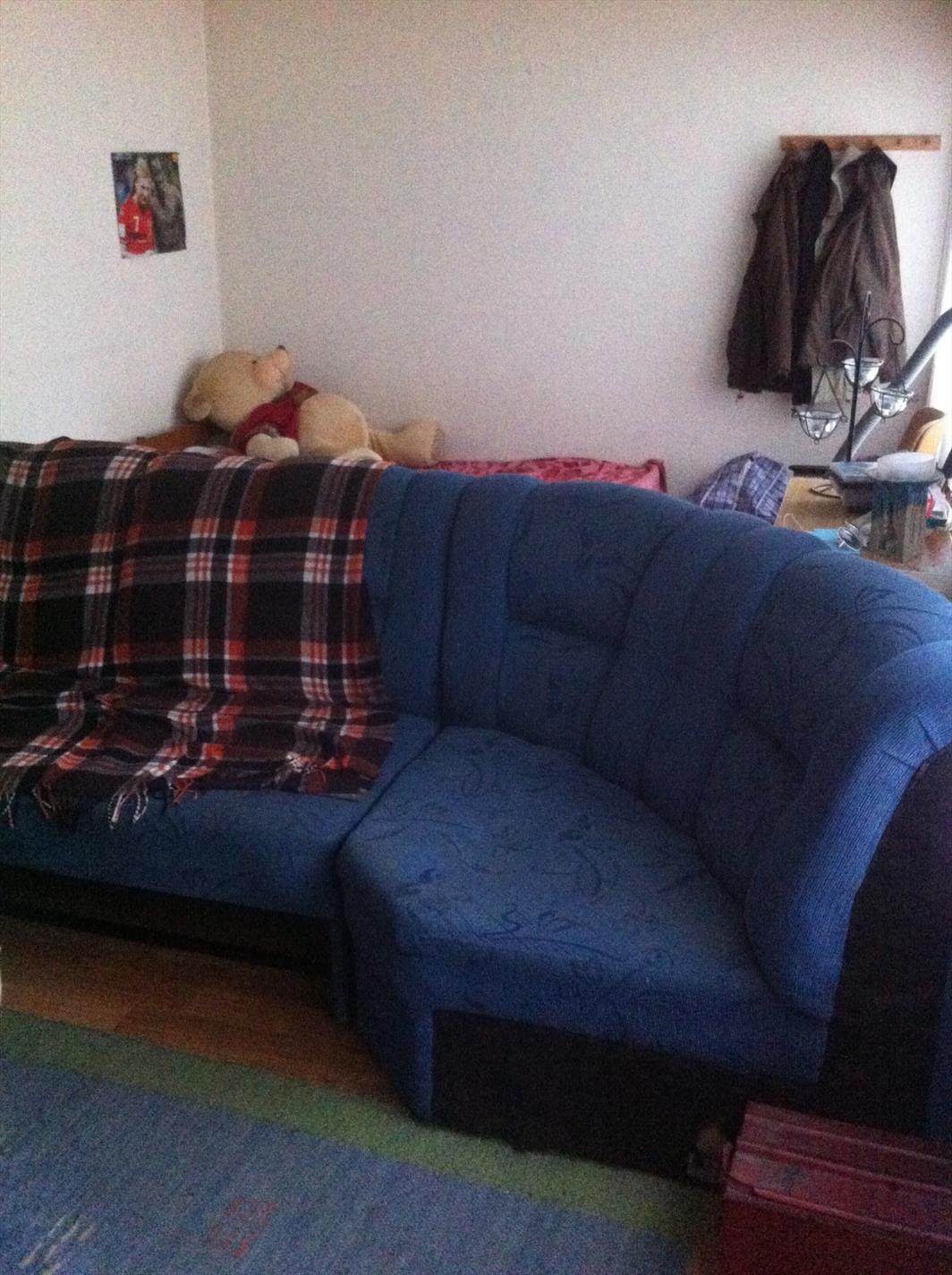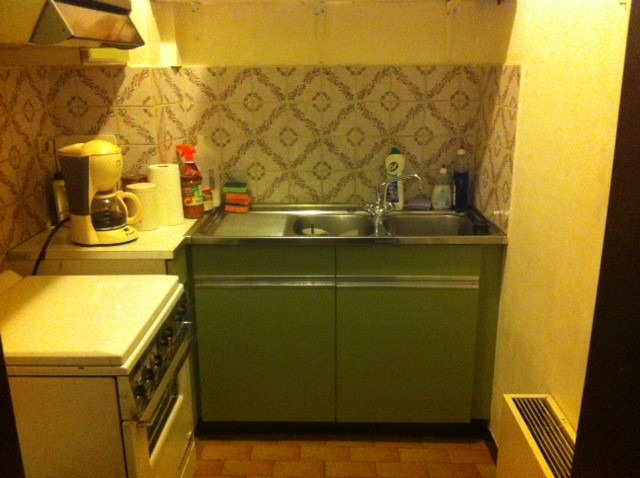 Verhuurde studio; voorzien van inkom, living/slaapruimte, keuken en badkamer.