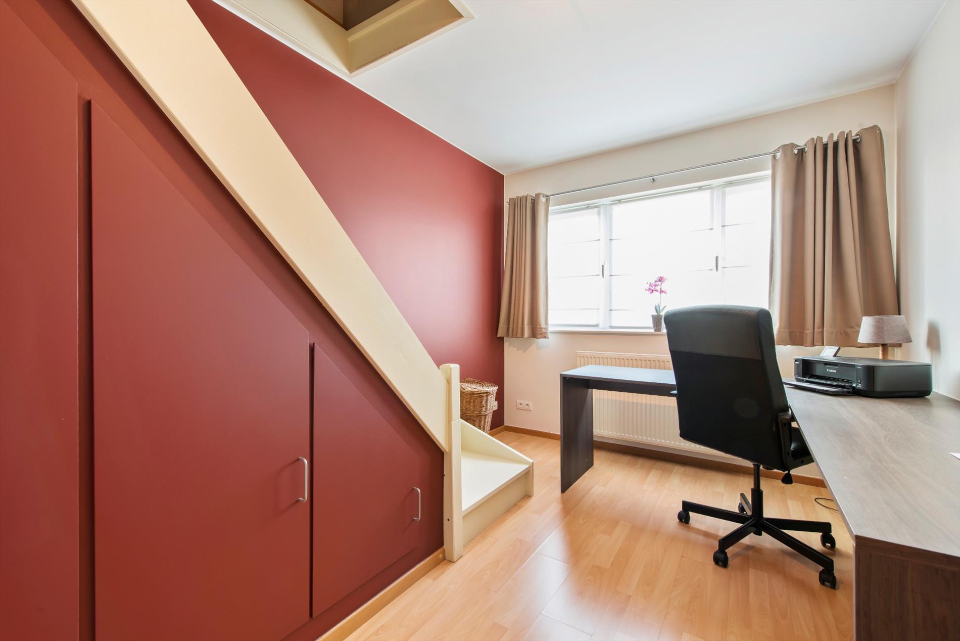 Op het verdiep zijn drie slaapkamers waarvan een is voorzien van een vaste trap naar de zolder (zolder is volledig afgewerkt). Achterste slaapkamers zijn voorzien van elektrische rolluiken.
