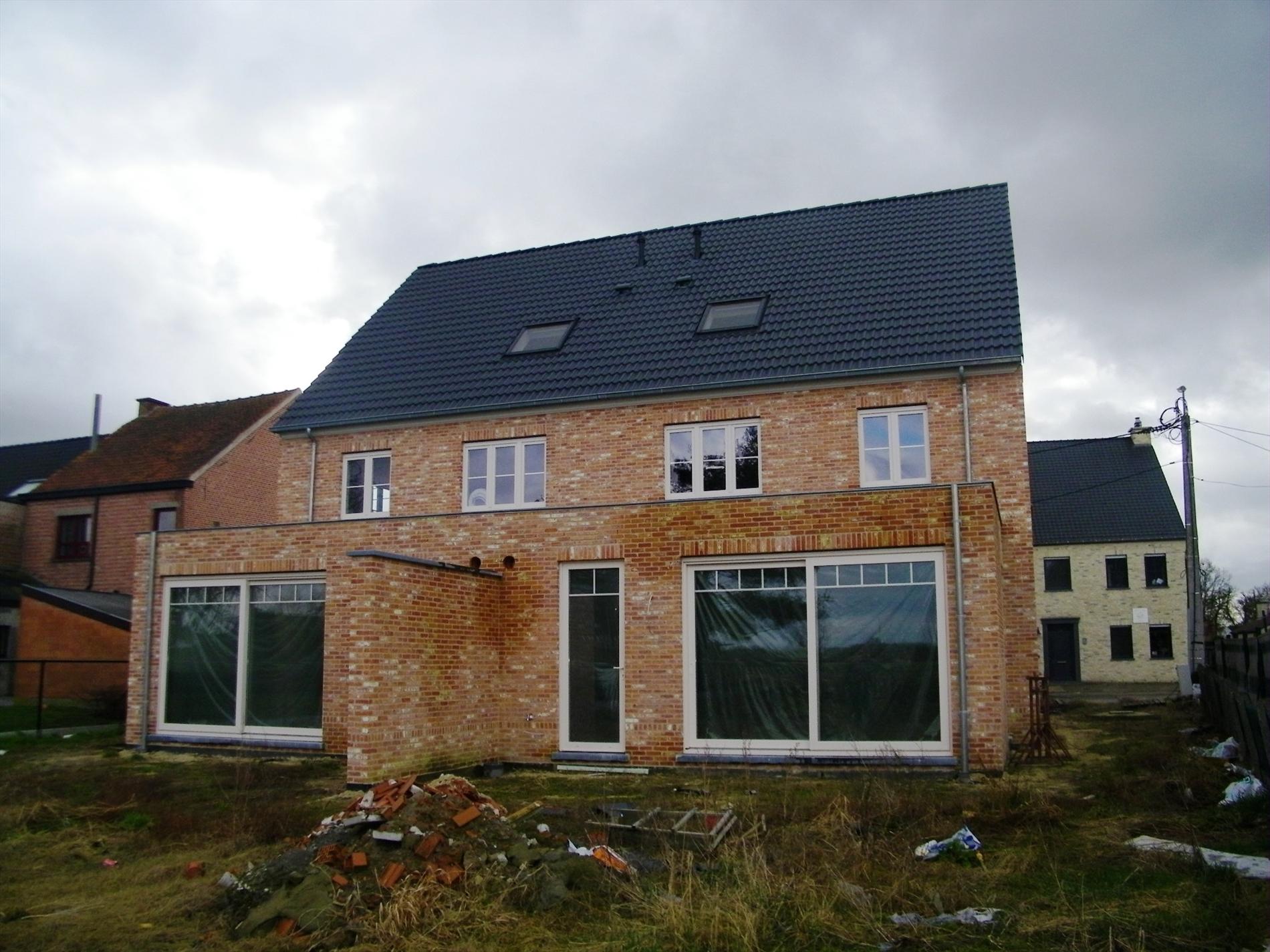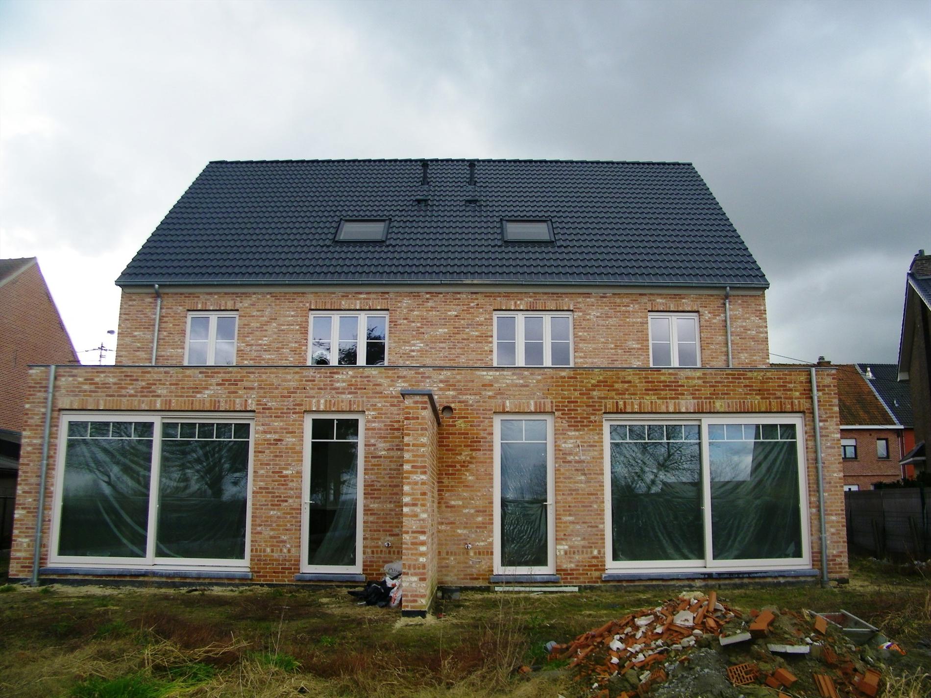 Nieuwbouw woning - pastorijstijl - half open bebouwing - voorzien van inkom, ruime living (40 m²) met zicht op tuin en weide achteraan, open keuken, berging, garage, 3 slaapkamers (11 12 en 15 m²), badkamer, zolder (45 m²) via vaste trap, CV/gas. Deel gevel woning wordt bewerkt in crepie. Materialen kunnen nog door kopers zelf gekozen worden.
