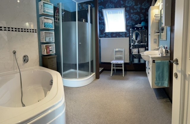 Op de verdieping bevinden zich 3 ruime slaapkamers en een ingerichte badkamer met ligbad, douche en modern badkamer meubel. De vaste trap leidt je naar de zolderruimte, die extra mogelijkheden biedt. De woning wordt verwarmd met centrale verwarming op aardgas en beschikt over een conforme elektriciteitskeuring.