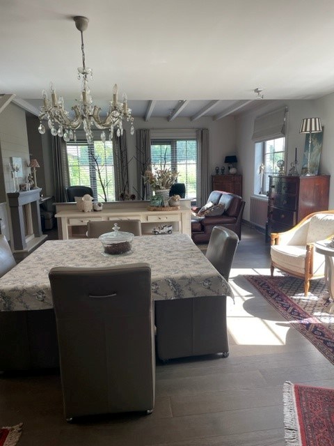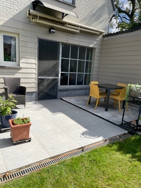 Bij binnenkomst word je verwelkomd in de inkomhal die toegang biedt tot een zeer ruime, lichtrijke living met gezellige gashaard. Aansluitend vind je een volledig ingerichte keuken met afzonderlijke eetplaats. Naast de eetplaats bevindt zich een extra ruimte die ideaal kan dienen als bureel of speelkamer, met aansluitend een koele berging. Verder zijn er op het gelijkvloers een afzonderlijk toilet, een terras, een tuinberging met overdekte zithoek, een mooie (niet te grote) tuin en een carport. De tuin is bovendien langs beide kanten van de woning bereikbaar.